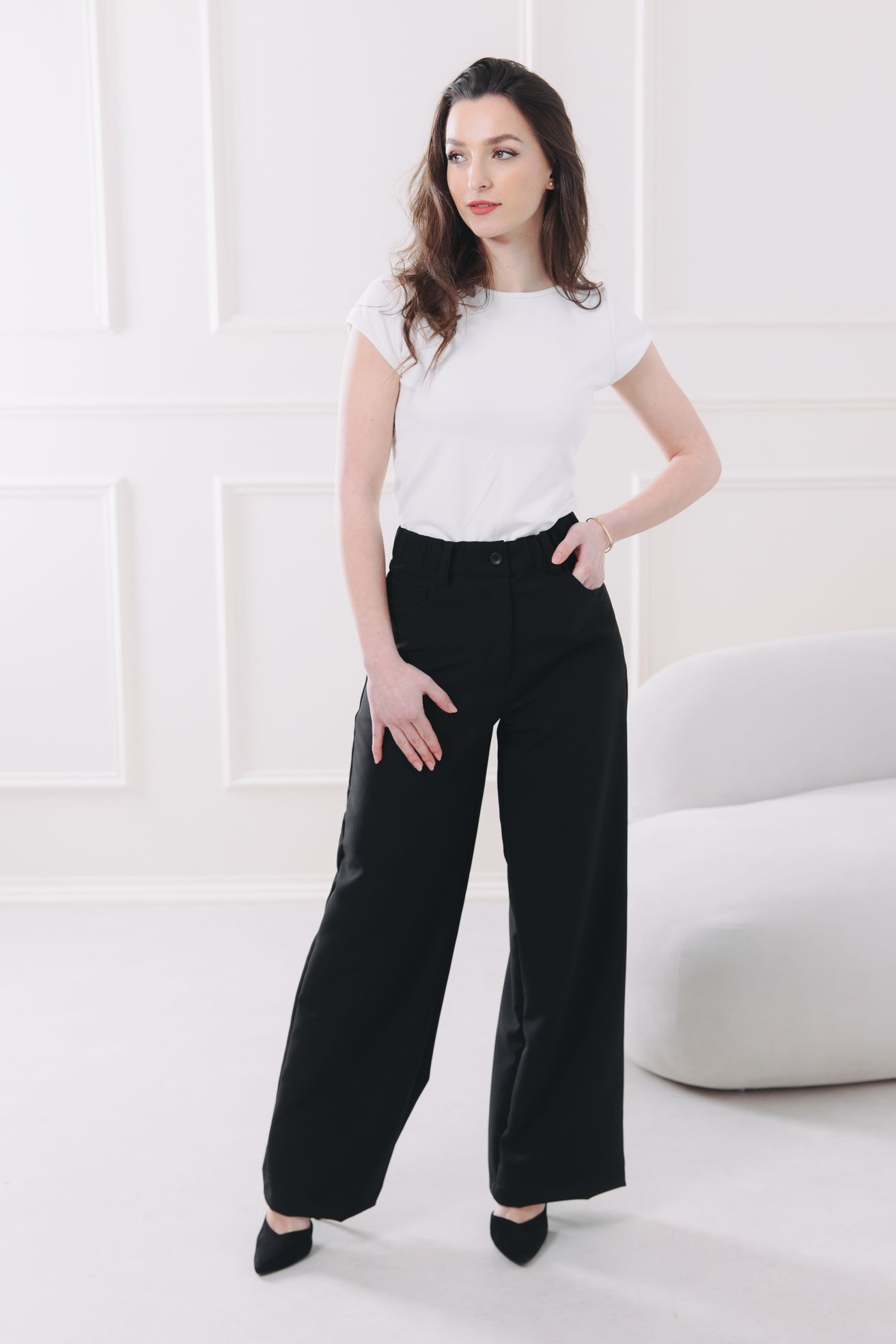Od ranní kávy přes důležité schůzky až po večerní relax s přáteli. Černé kalhoty Talia jsou vaším elegantním parťákem pro každou situaci. Žádné kompromisy, žádné škrcení, jen čistý styl a nekonečné pohodlí v černé barvě, která nikdy nevyjde z módy.