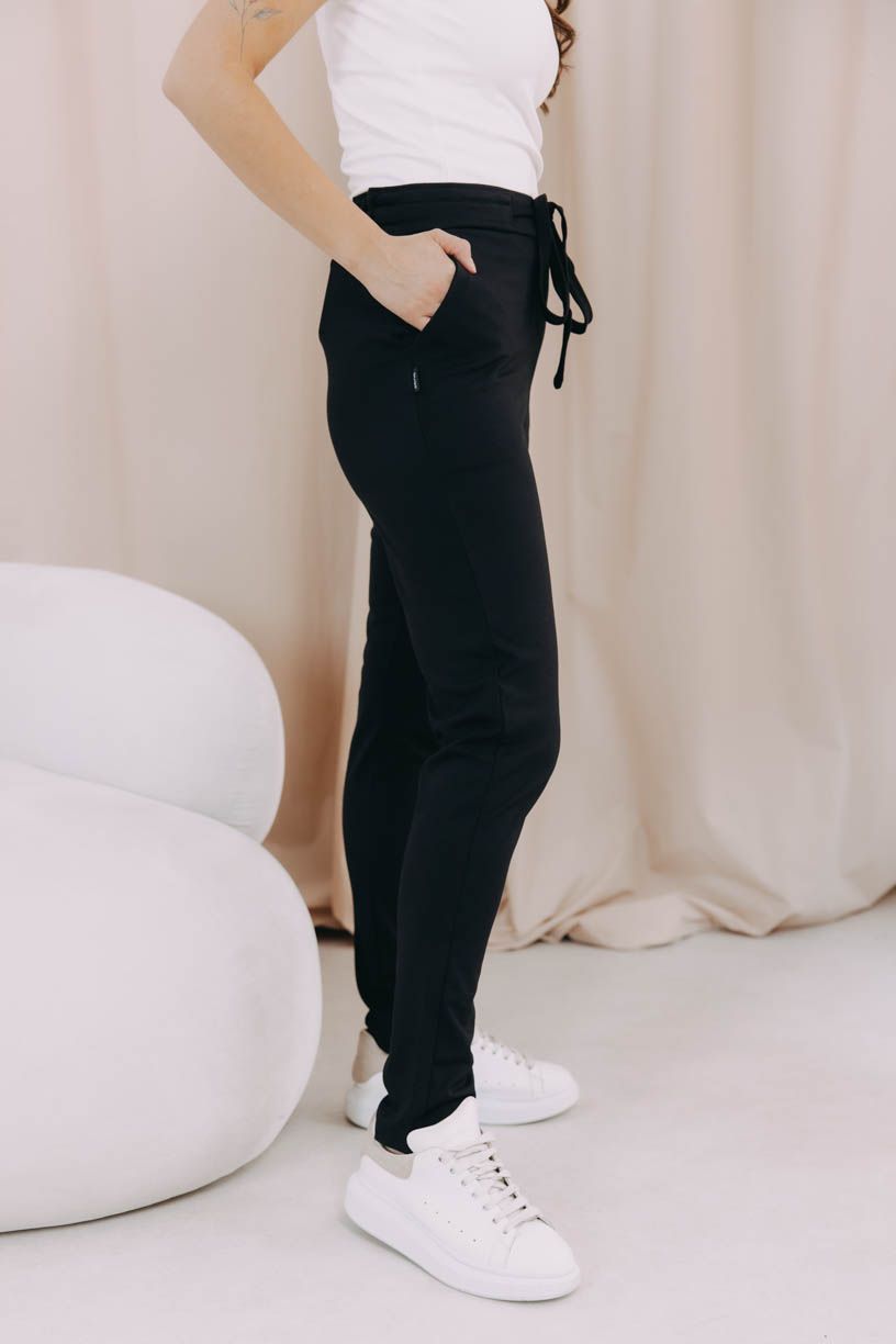 Z kalhot Vito tyhle podědily vysoký pas se širokou gumou a šňůrkou na uvázání, aby vše sedělo na svém místě. Úzký a prodloužený střih nohavic pak dostaly po Elli. Krásně tvarují postavu, tradičně jsou velmi pohodlné a nikde netlačí.