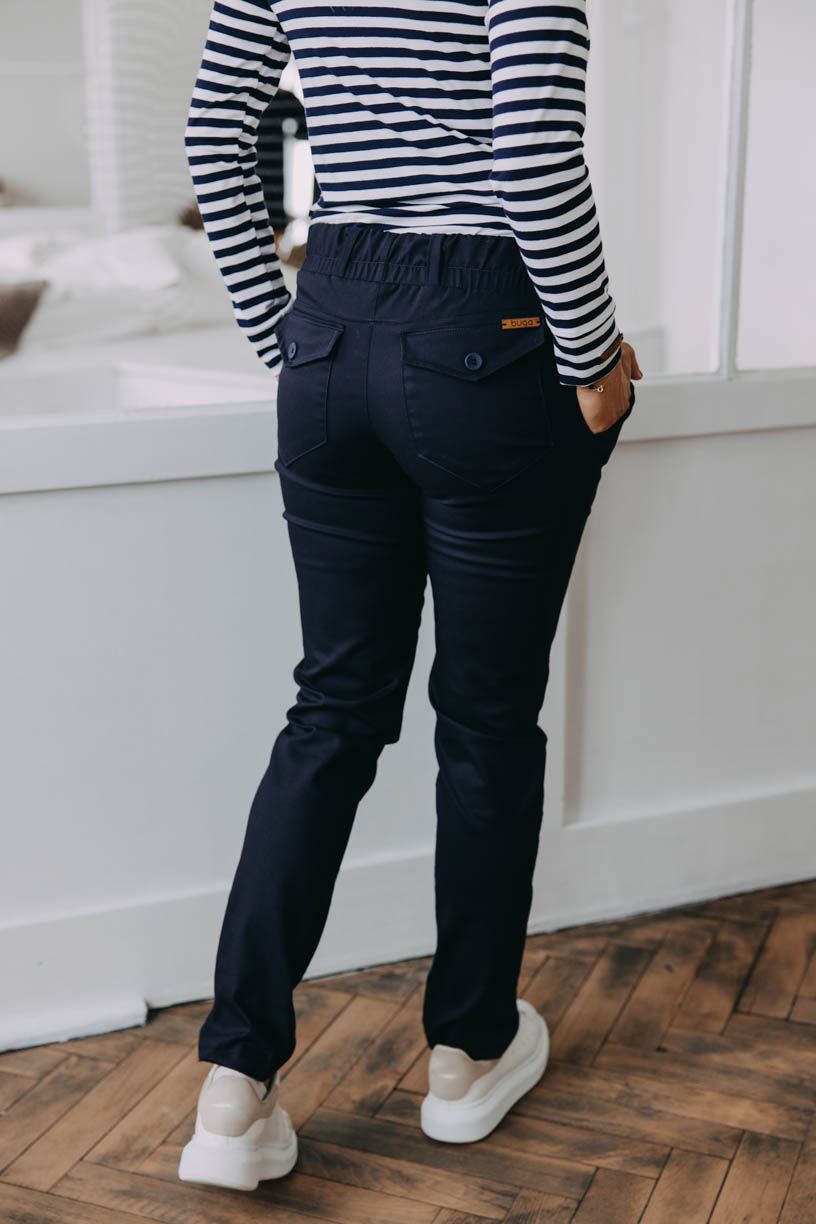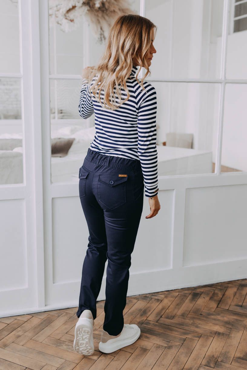 Kalhoty Wisal Navy už na pohled zaujmou výraznými zadními kapsami. Když si je obléknete, zjistíte, že nejen dobře vypadají, ale že se v nich i dobře cítíte.