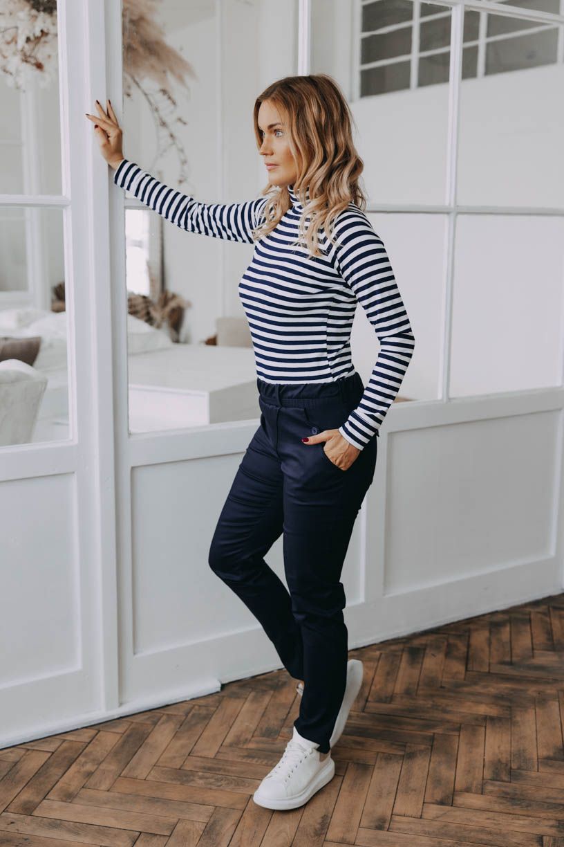 Dobře padnoucích kalhot v šatníku nikdy není dost. A jelikož ženské postavy jsou nesmírně rozmanité a každé z nás sedne něco jiného, Peťa opět čarovala s nůžkami a vytvořila pohodlné kalhoty Wisal v tmavě modré barvě. Střihově si pomohla stálicemi Elli, však taky není třeba vymýšlet kolo.