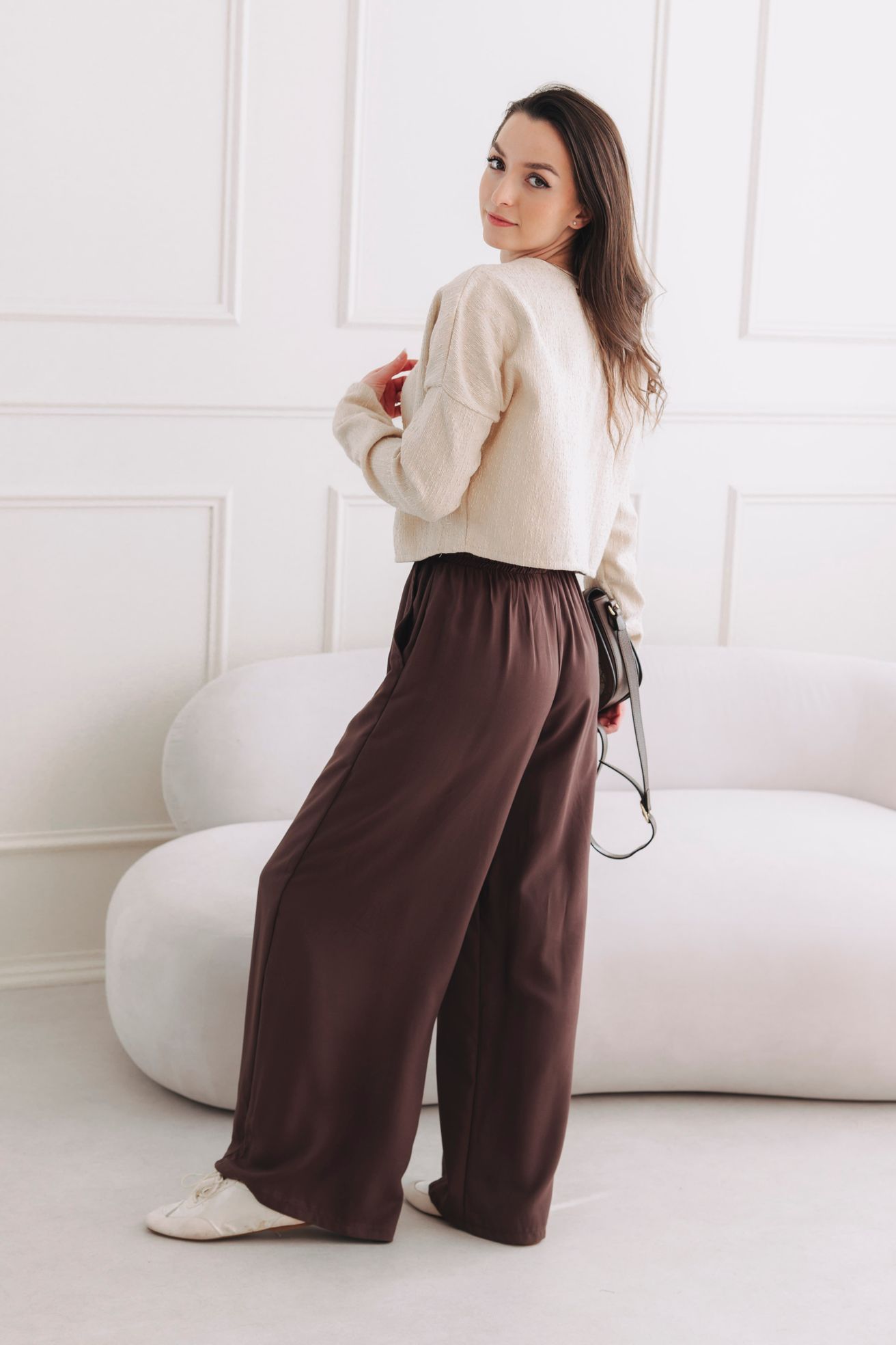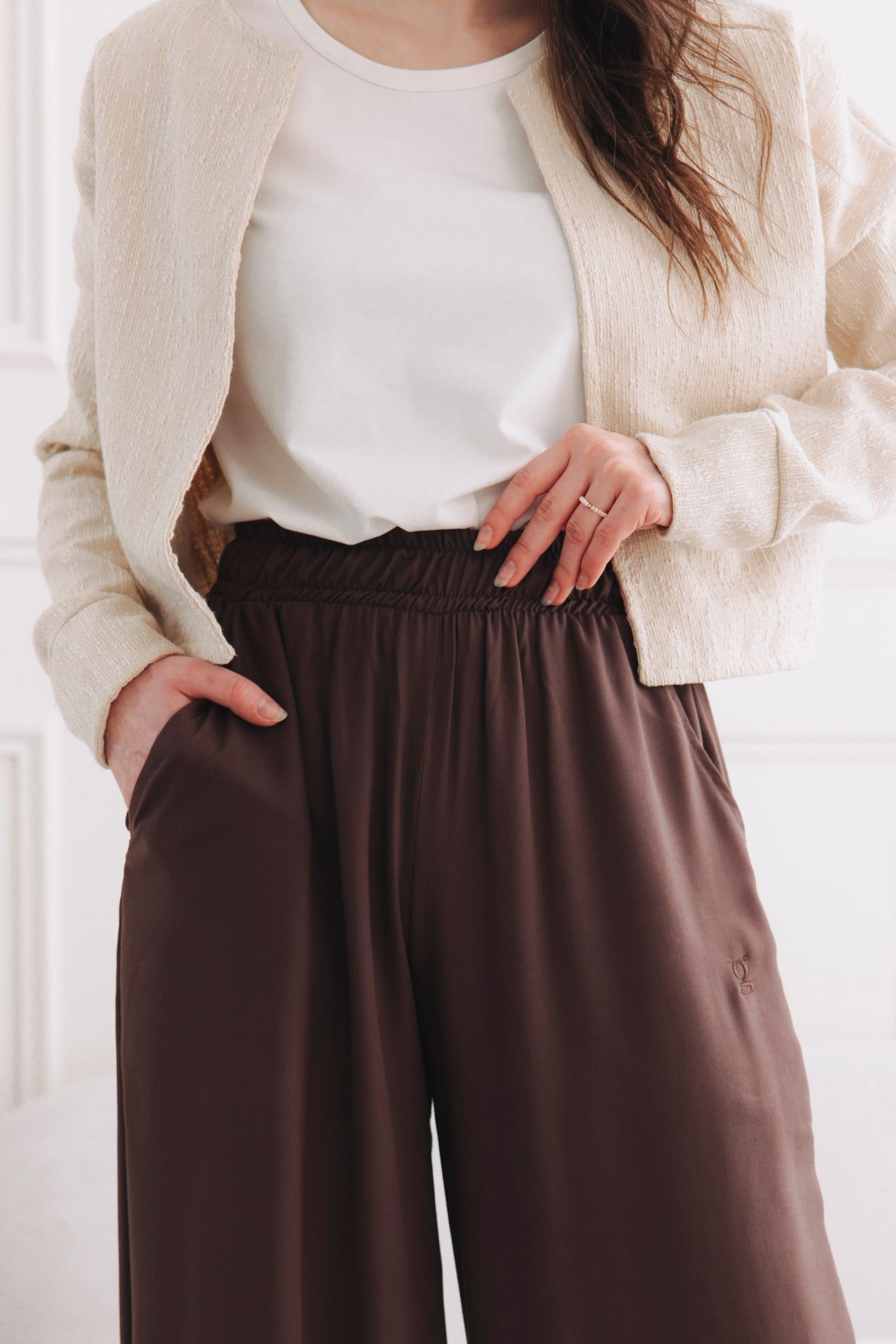 Mít v šatníku kousek, který vypadá luxusně, a přitom se v něm cítíte v naprostém pohodlí, je malý zázrak. Hnědé kalhoty Zanele jsou jistotou pro dny, kdy chcete vypadat šik, i když vás čeká program delší než fronta na poště. Široké nohavice jim dodávají vzdušnost a vysoký pas do gumy zajistí, že vás nebude nic tlačit. Zatímco ostatní budou po obědě nápadně rozepínat knoflíky, vy v Zanele protančíte dnem s úsměvem a v naprostém pohodlí.