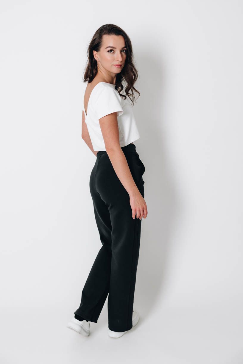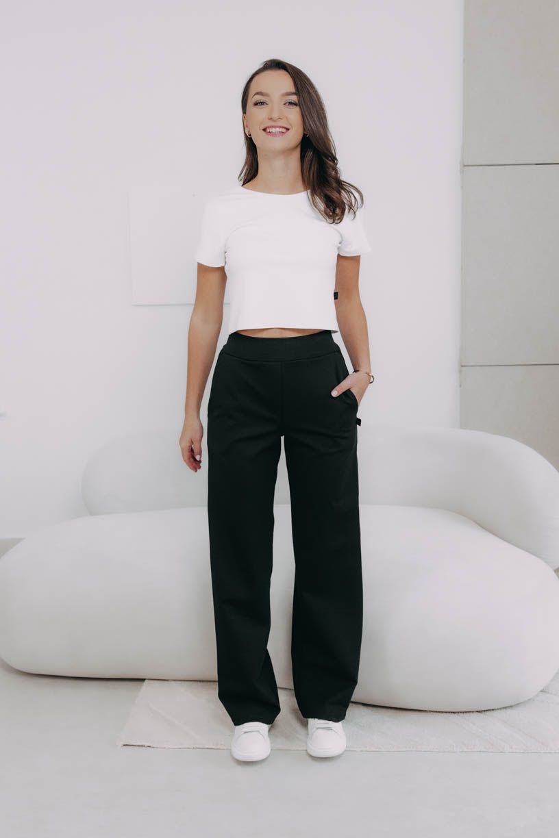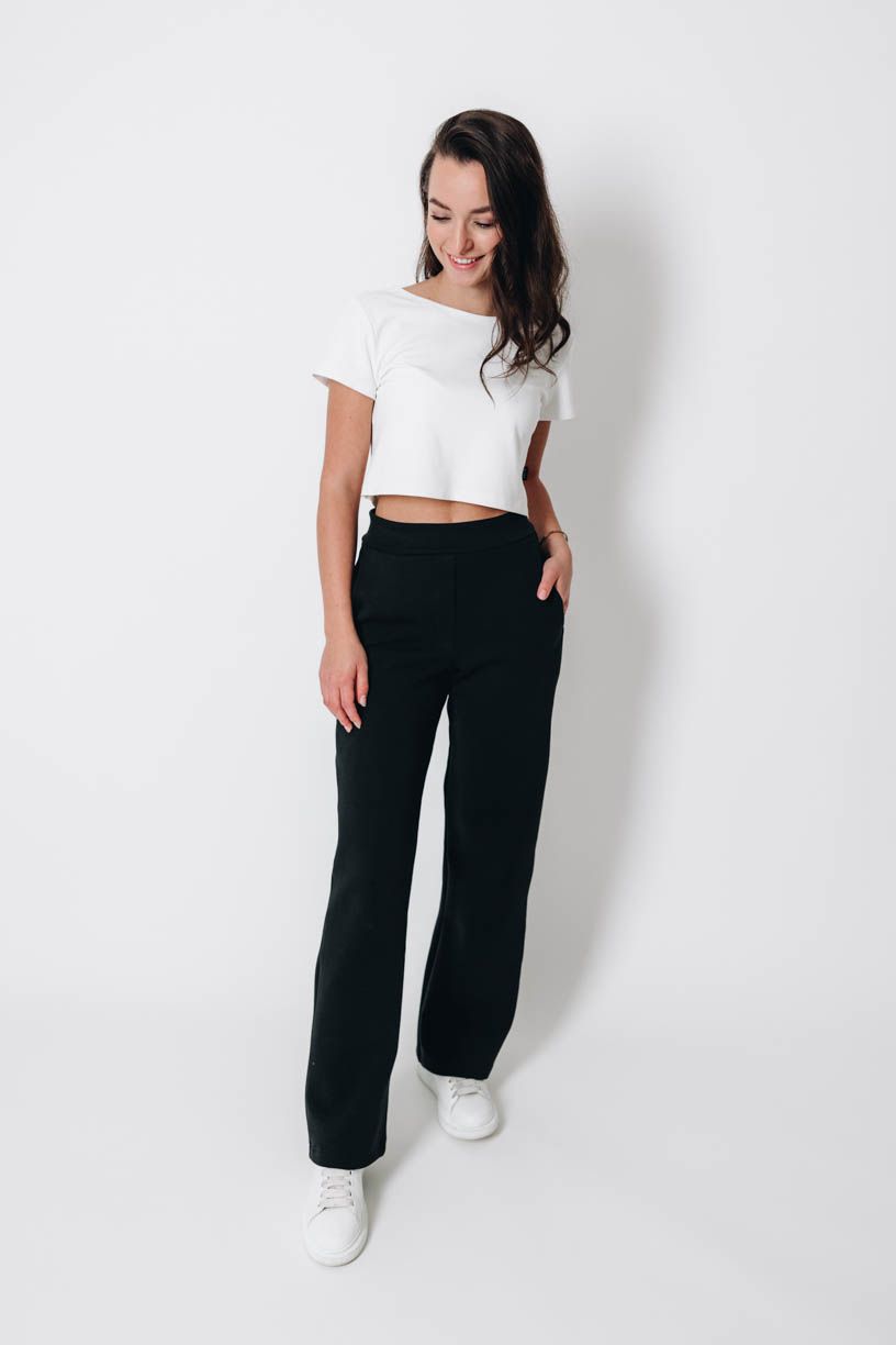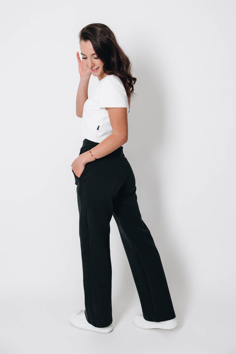 Tato otázka je na místě! Černá varianta kalhot je ušita z nového materiálu, který jsme dlouho vybírali, zkoušeli a zamilovali si ho.