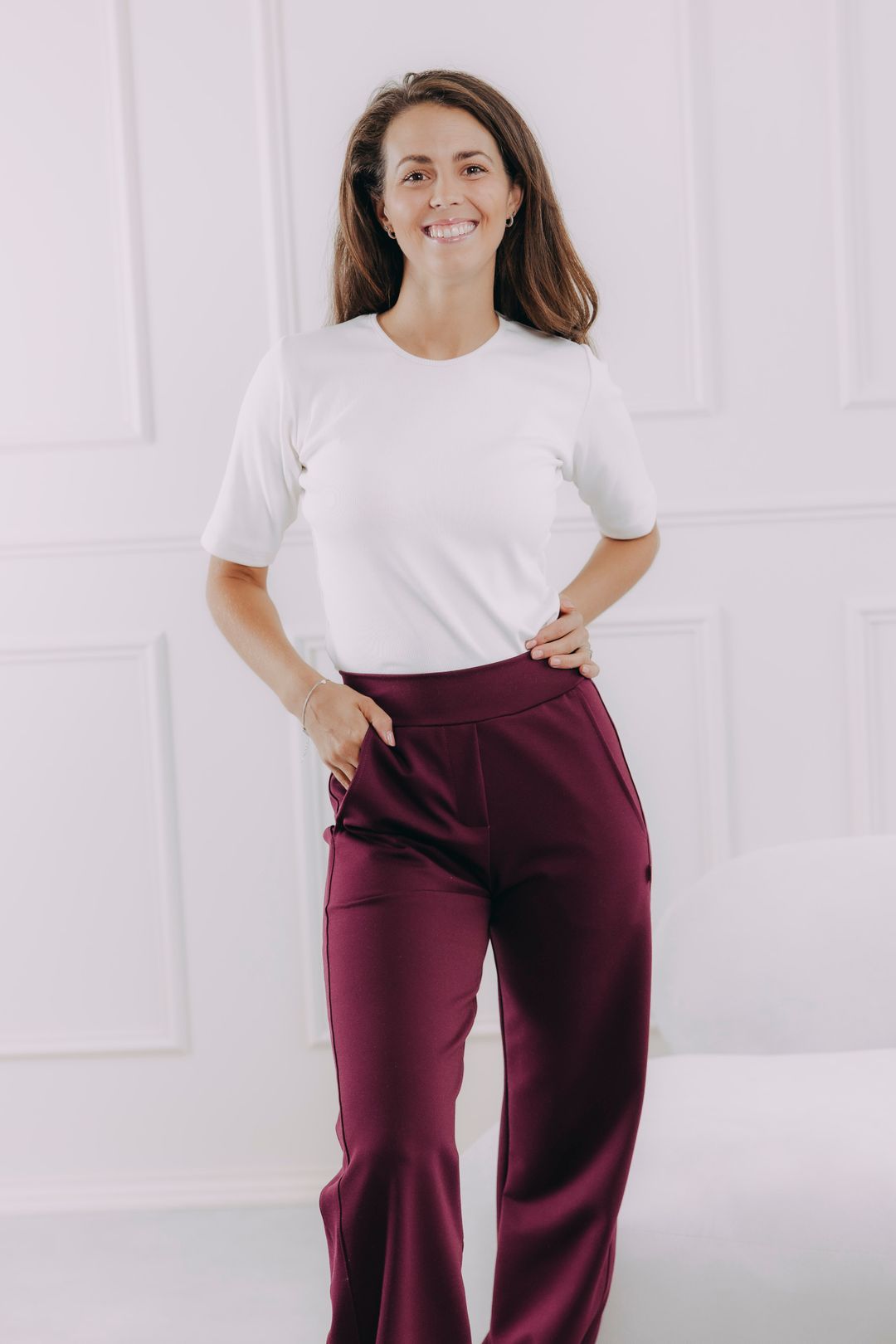 Tato otázka je na místě! Bordo varianta kalhot je ušita z nového materiálu, který jsme dlouho vybírali, zkoušeli a zamilovali si ho.