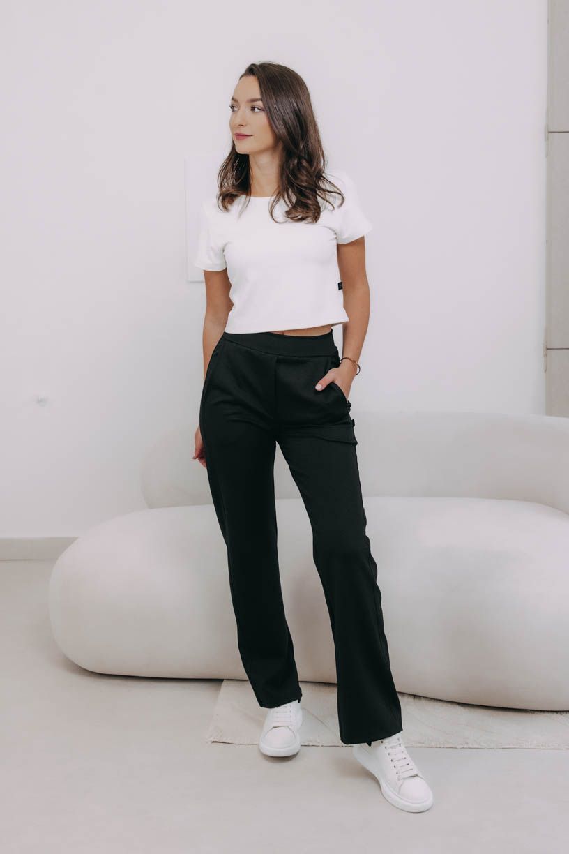 Stručně řečeno, jsou to pohodlné, elegantní a velmi praktické kalhoty, které se dají kombinovat téměř s čímkoliv.