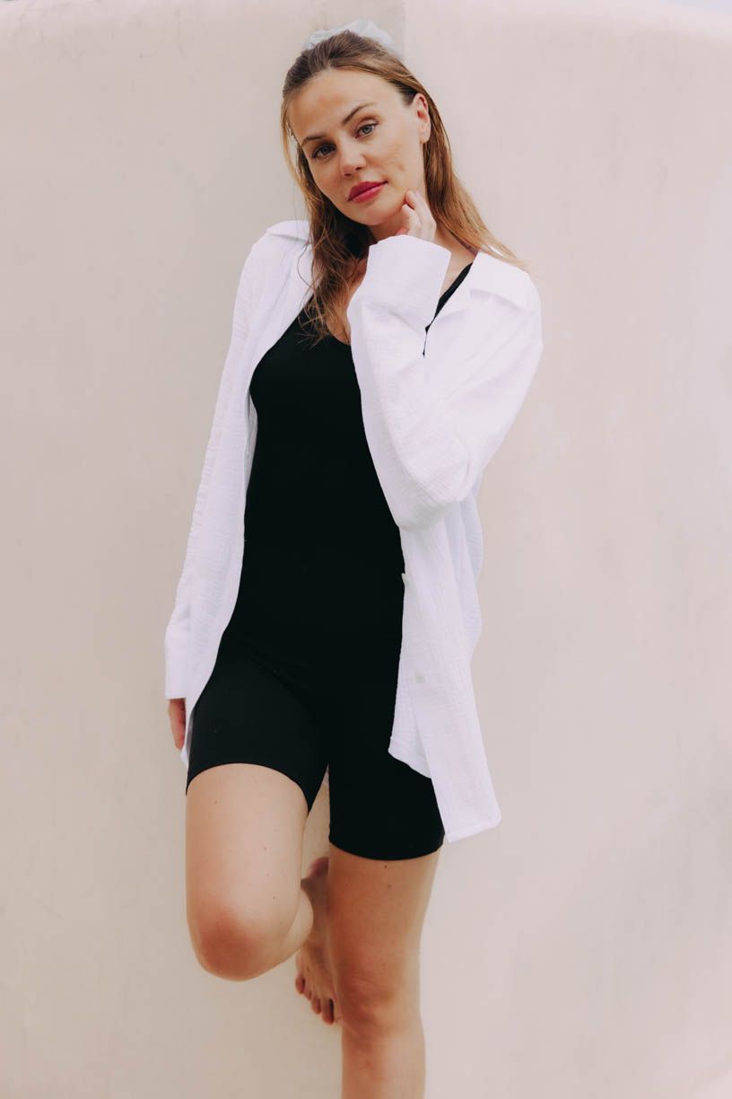 Materiál je pevný a pružný tak akorát, abyste se v něm cítily pohodlně, a univerzální černou barvu sladíte s čímkoliv. Sáhněte třeba po košili Gauri a parádní plážový outfit je na světě. Kombinovat ale můžete i se sukní, kardiganem nebo oversized tričkem a páskem – záleží jen na vás, kam se v módním fantazírování vydáte.