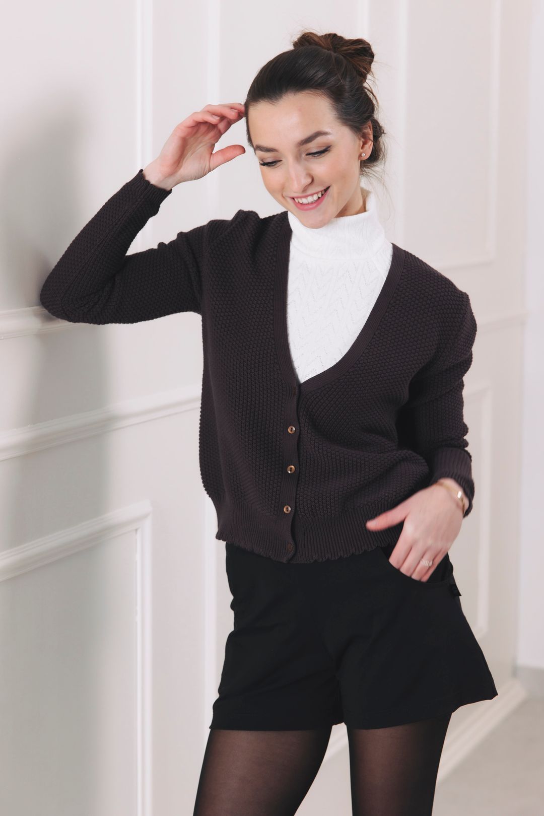 - Detaily: Jeho krása je vetkána do malých, promyšlených detailů – jemná textura úpletu, kvalitní knoflíčky a dokonalý střih, který je finální tečkou každého outfitu.