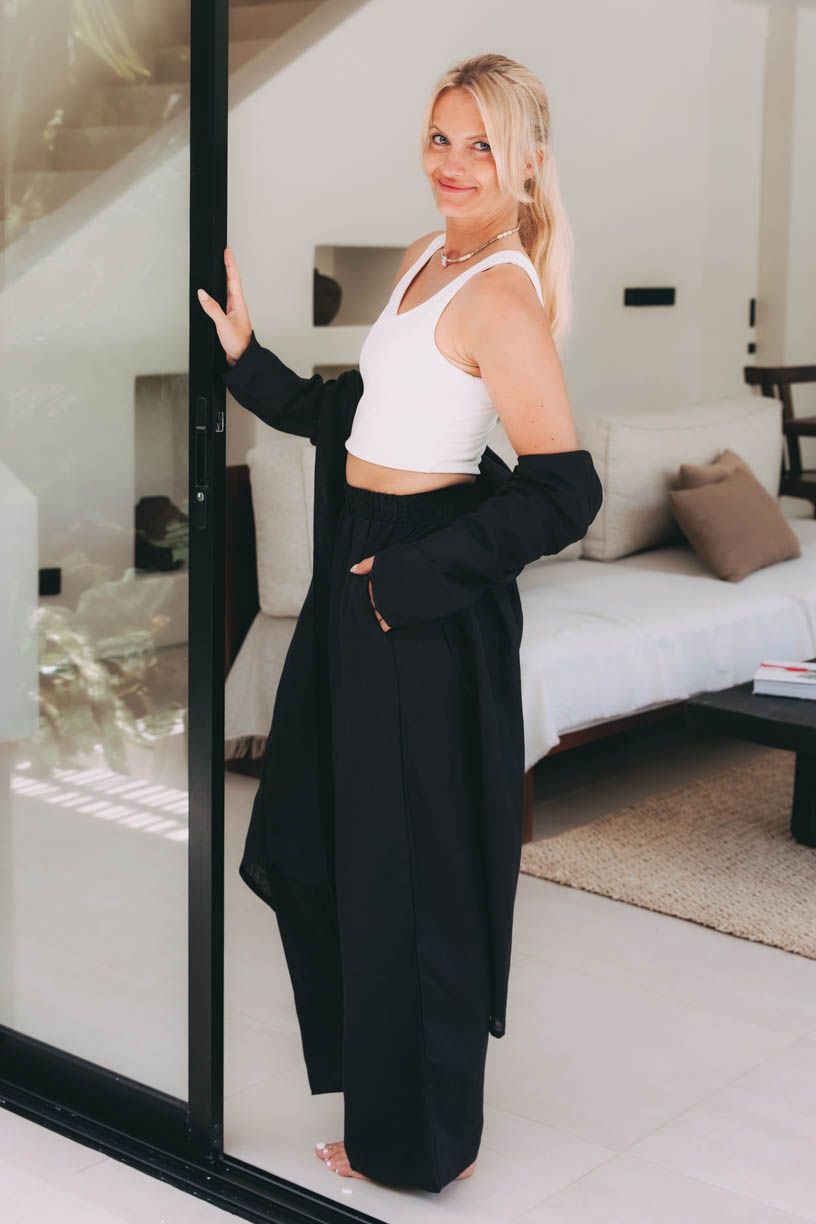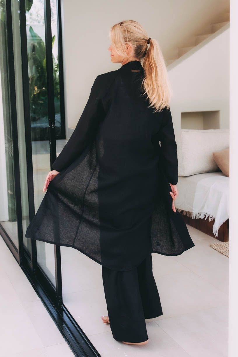 Černá barva z něj dělá nanejvýš univerzální kousek, zatímco minimalistický střih umožňuje snadné vrstvení. Jeho volnější silueta působí ležérně, ale zároveň elegantně, takže ho můžete nosit nejen k volnočasovým outfitům, ale i jako stylový doplněk k šatům nebo džínům.