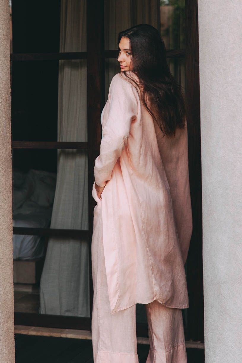 Světle broskvová barva dodává modelu něžnost, zatímco minimalistický střih umožňuje snadné vrstvení. Jeho volnější silueta působí ležérně, ale zároveň elegantně, takže ho můžete nosit nejen k volnočasovým outfitům, ale i jako stylový doplněk k šatům nebo džínům.