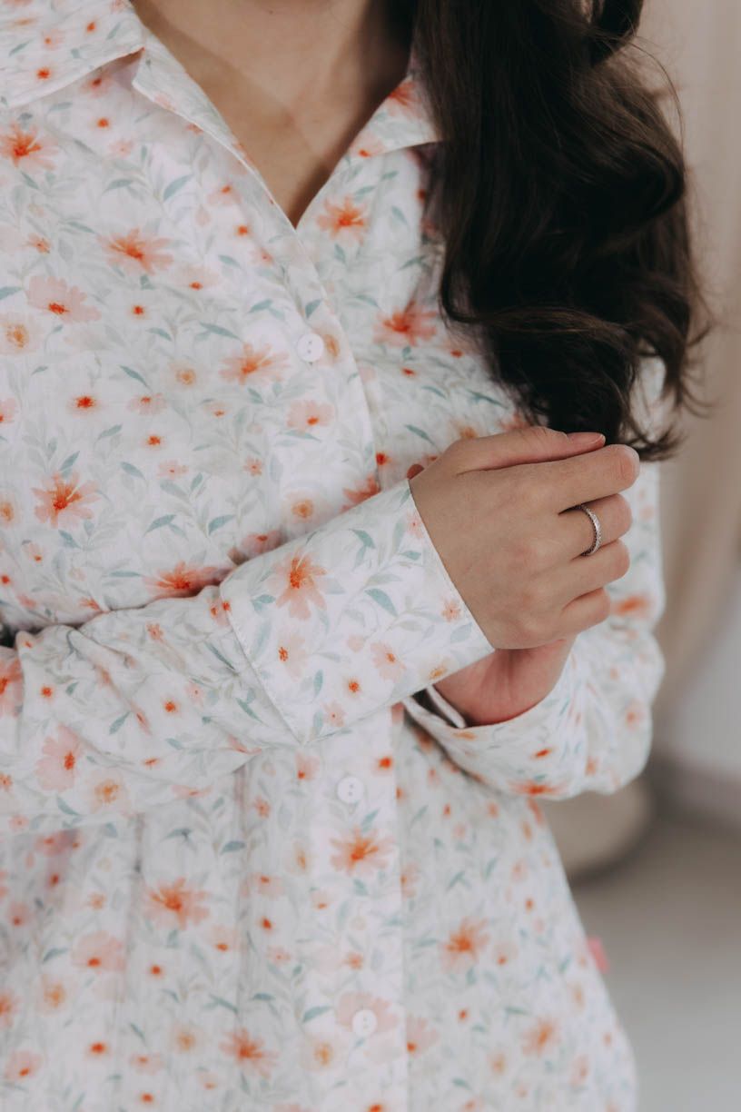 Košili Gauri můžete klidně jen tak přehodit přes ramena, zavázat její spodní cípy na uzlík, nechat volně rozepnutou, nebo hezky spořádaně knoflík po knoflíku zapnout, kam až potřebujete. Meze se nekladou.