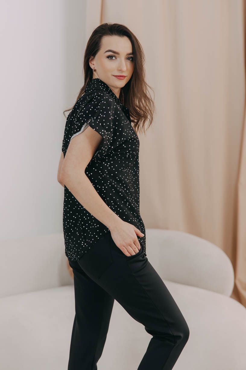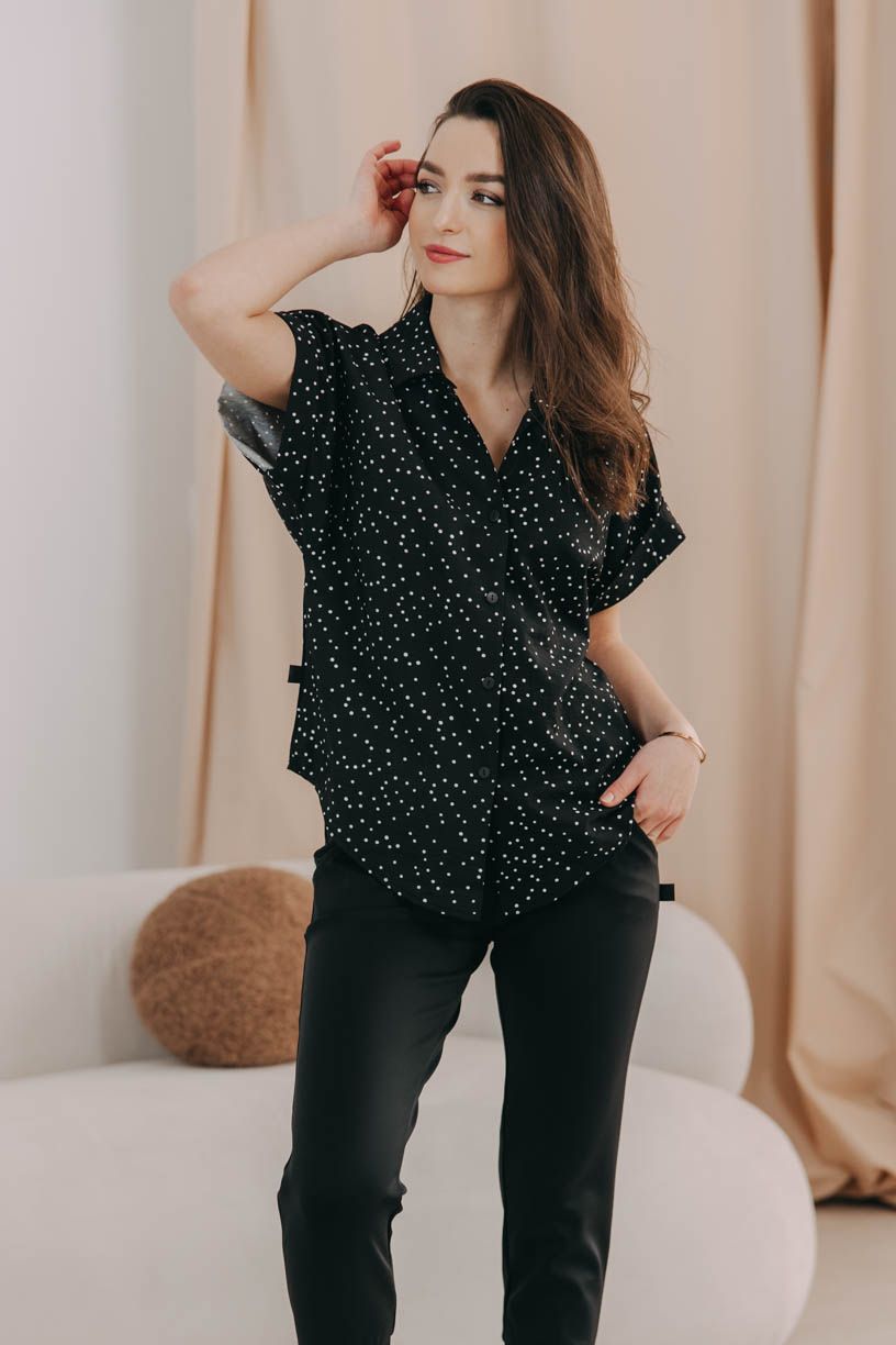 Decentní límeček a efekt ohrnutých rukávů zaručí vašemu outfitu punc ležérní elegance. Vzít ji tak můžete ke kalhotám i k sukni. Perfektně se doplňuje s jednobarevnými kousky, ale odvaze se meze nekladou.