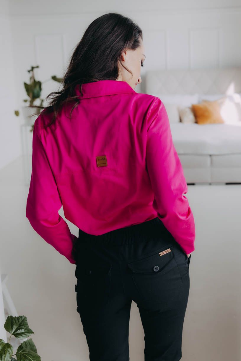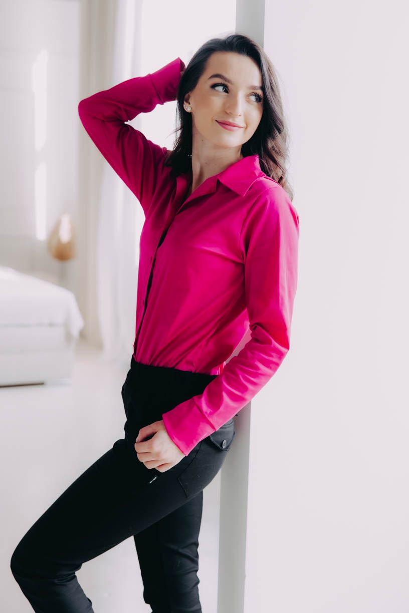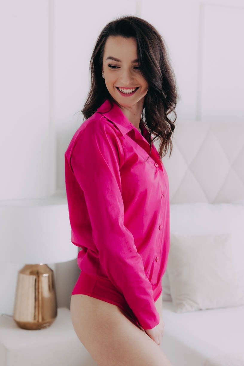 Elegantní? Ano. Pohodlná? Dvojnásobně! Máme tu i něco pro vás, co mají rády košile, ale nenávidí, když se vymotávají z kalhot: bodýčkovou košili! Zapíná se klasicky na dvě patentky. A pro "Ach, ta je pohodlná" efekt, jsme ji ušili z viskózy s polyesterem a elastanem.