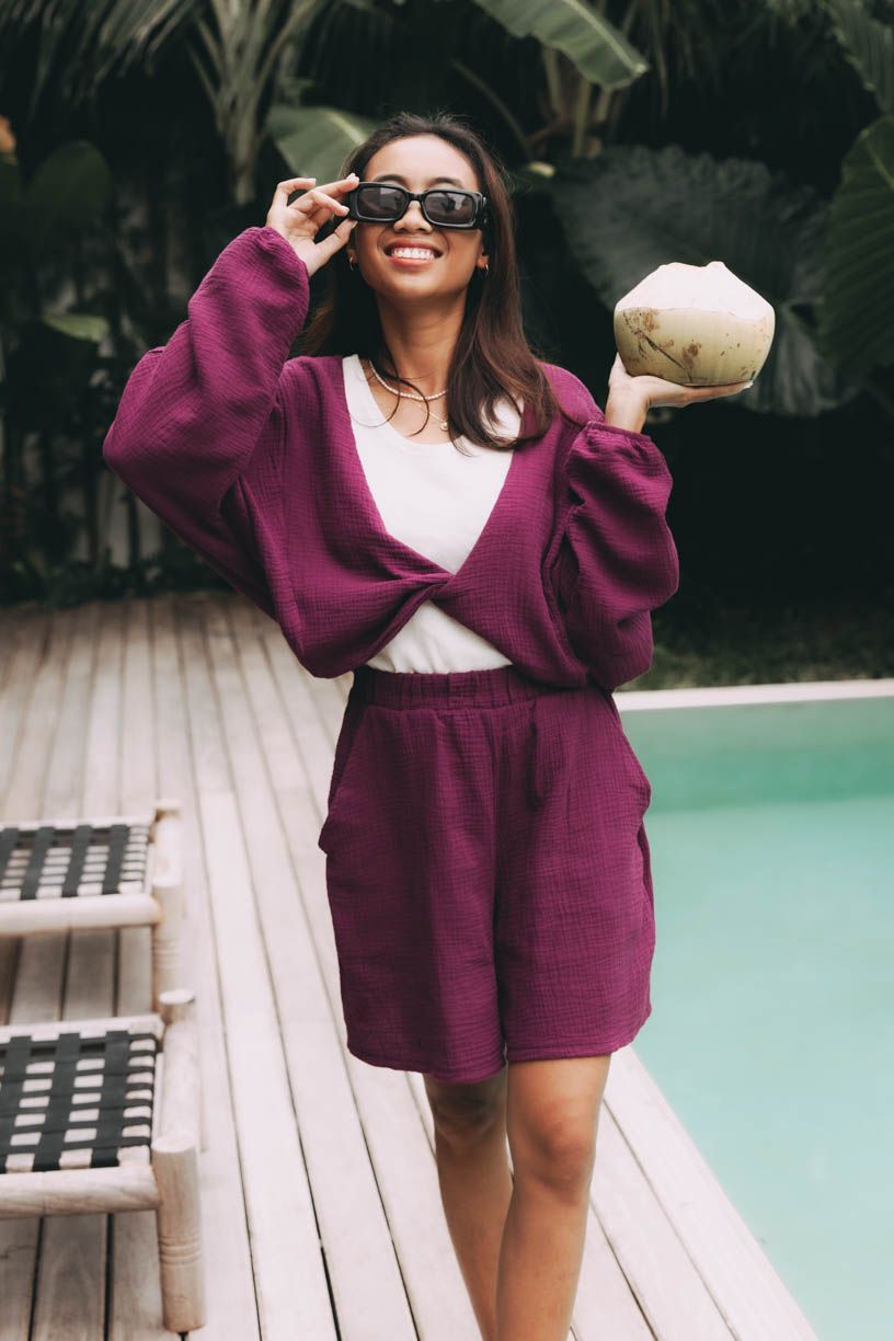Akosua jsou díky vzdušné bavlně skvělou volbou právě do exotičtějšího počasí. Díky širokému střihu jsou stejně elegantní jako sukně, a přitom si ponechávají svoje „kraťasové výhody“.