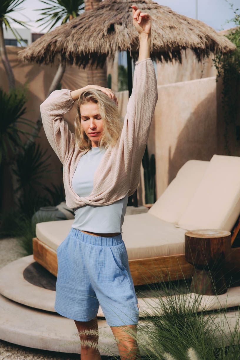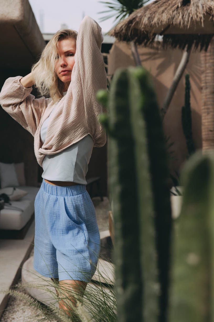 Akosua jsou díky vzdušné bavlně skvělou volbou právě do exotičtějšího počasí. Díky širokému střihu jsou stejně elegantní jako sukně, a přitom si ponechávají svoje „kraťasové výhody“.