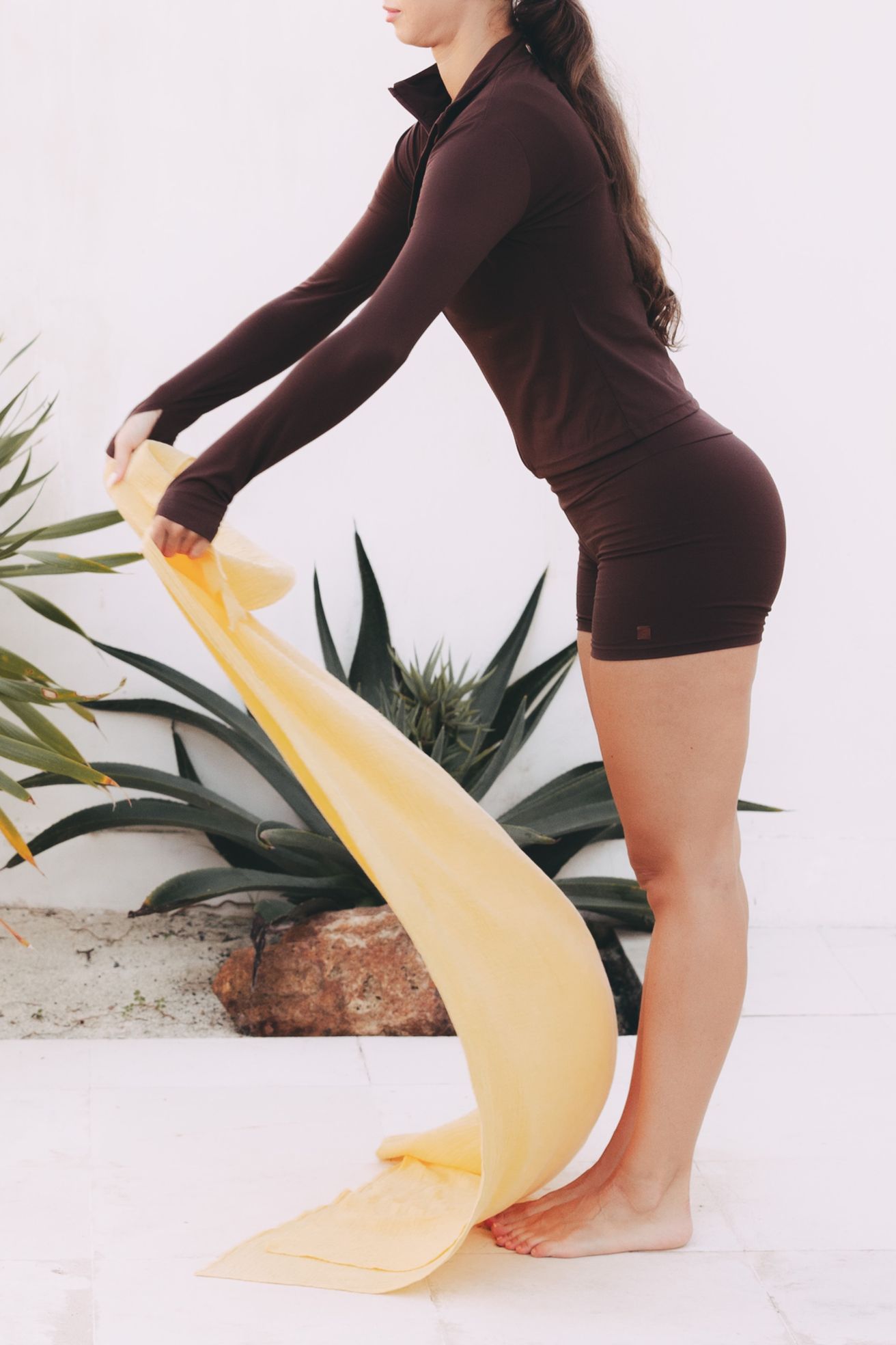 Oblečte se do odstínu horké čokolády a dovolte si zpomalit. Naše nové hnědé kraťasy z kolekce Buga Yoga jsou víc než jen kousek oblečení – jsou pozvánkou k lehkosti.
