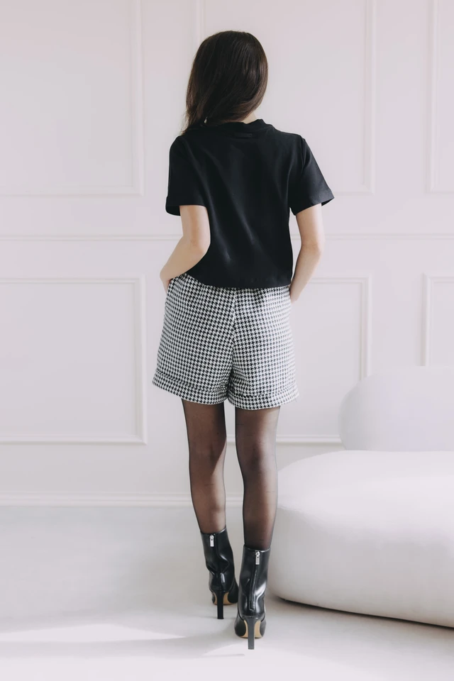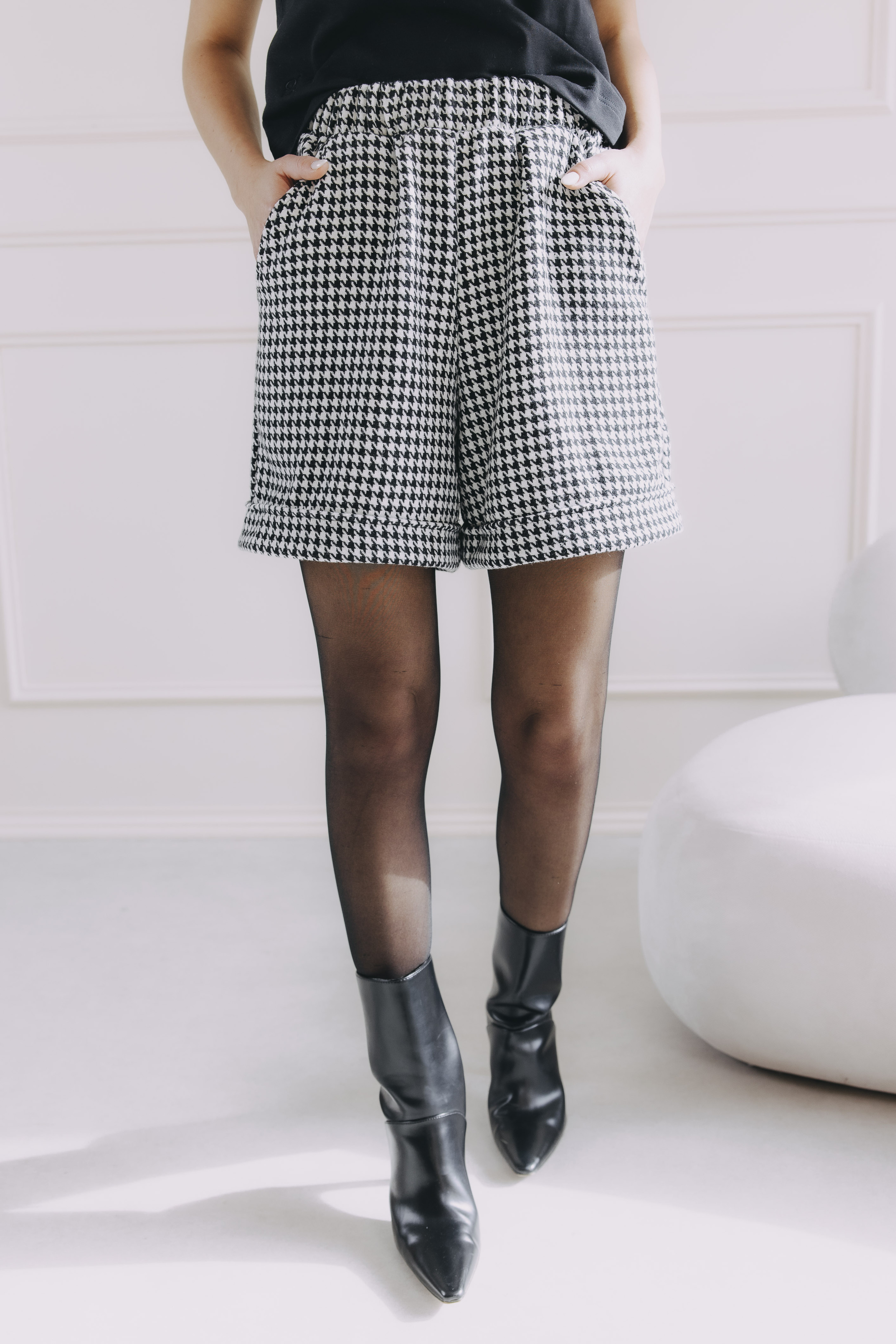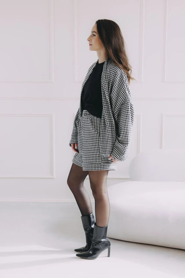 - Barva a vzor: Ikonický vzor kohoutí stopy v černobílé – nadčasová elegance s moderním twistem.