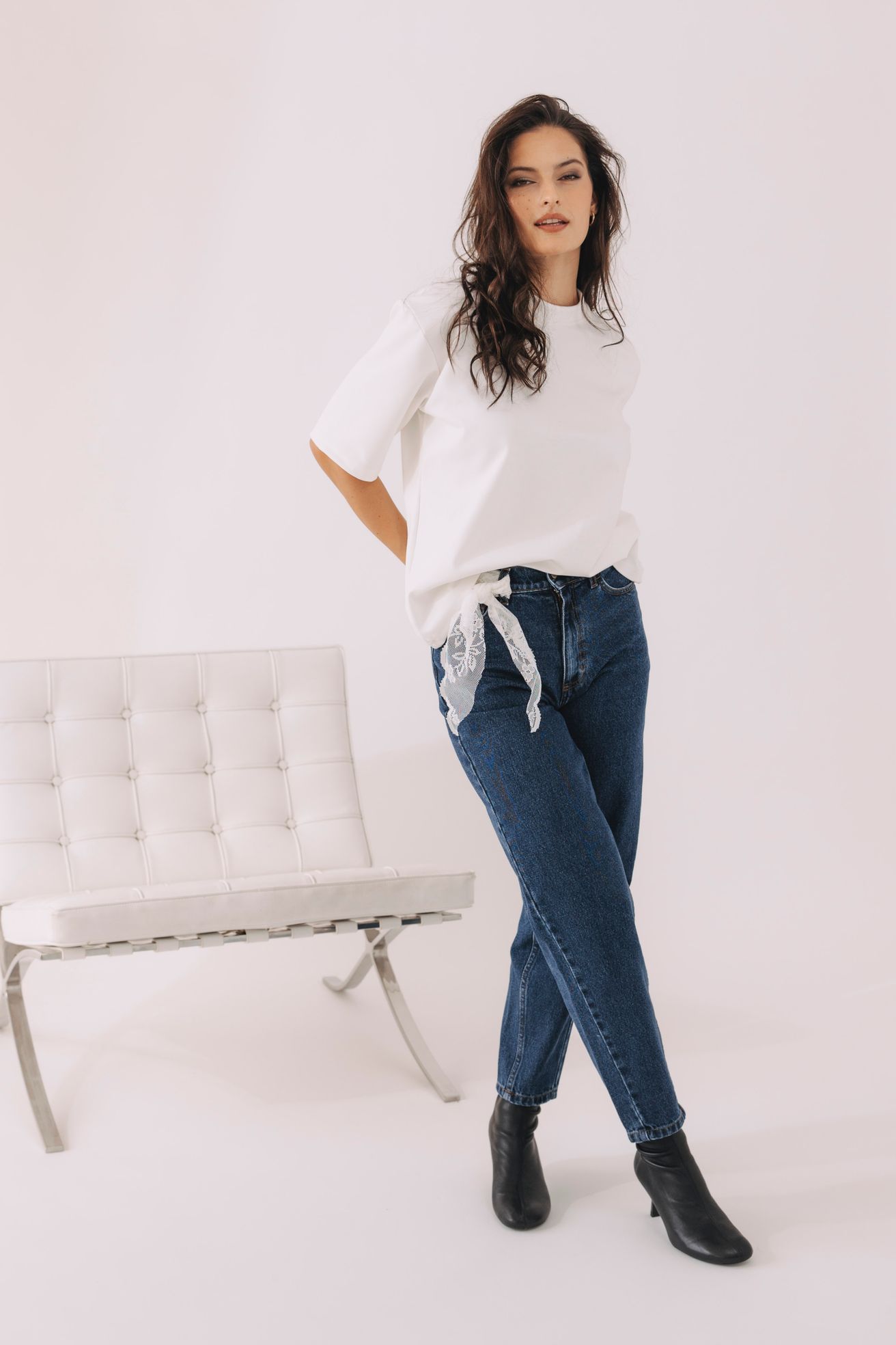Proč to funguje: Světlý denim a jemná krajka vytvářejí zajímavý a nečekaně šik celek.