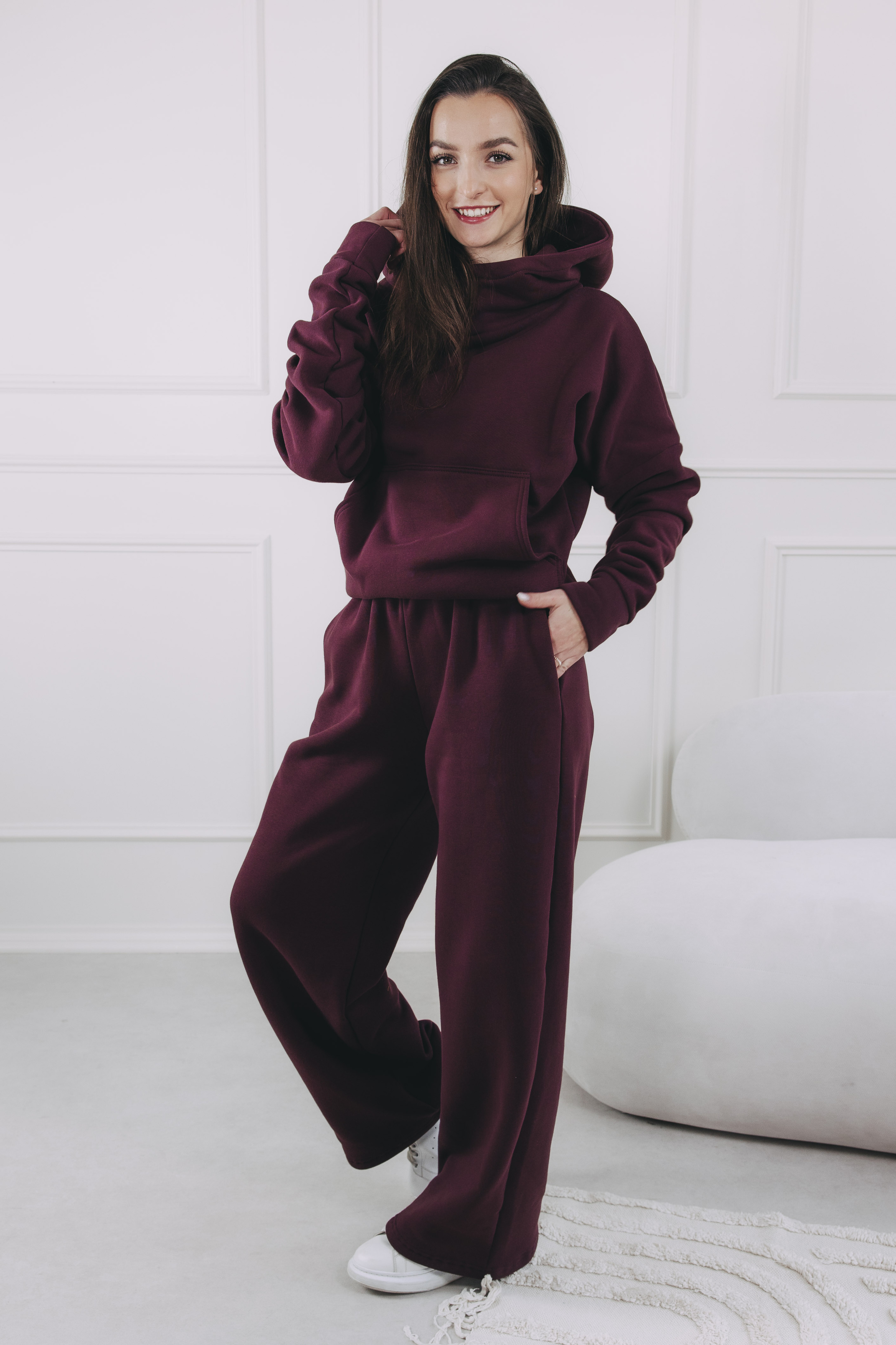 Mikina, která ví, co chce, a vy v ní taky. Je navržena tak, aby vám dodala okamžitý pocit komfortu i v ten nejchladnější den. Dva světy v jednom kousku: Hawa je váš nový parťák, který dokonale zvládá pohodu na gauči i stylový look do města. V této trendy vínové hrdince se budete cítit příjemně chráněná před okolním světem, ale rozhodně ne přehlédnutelná.