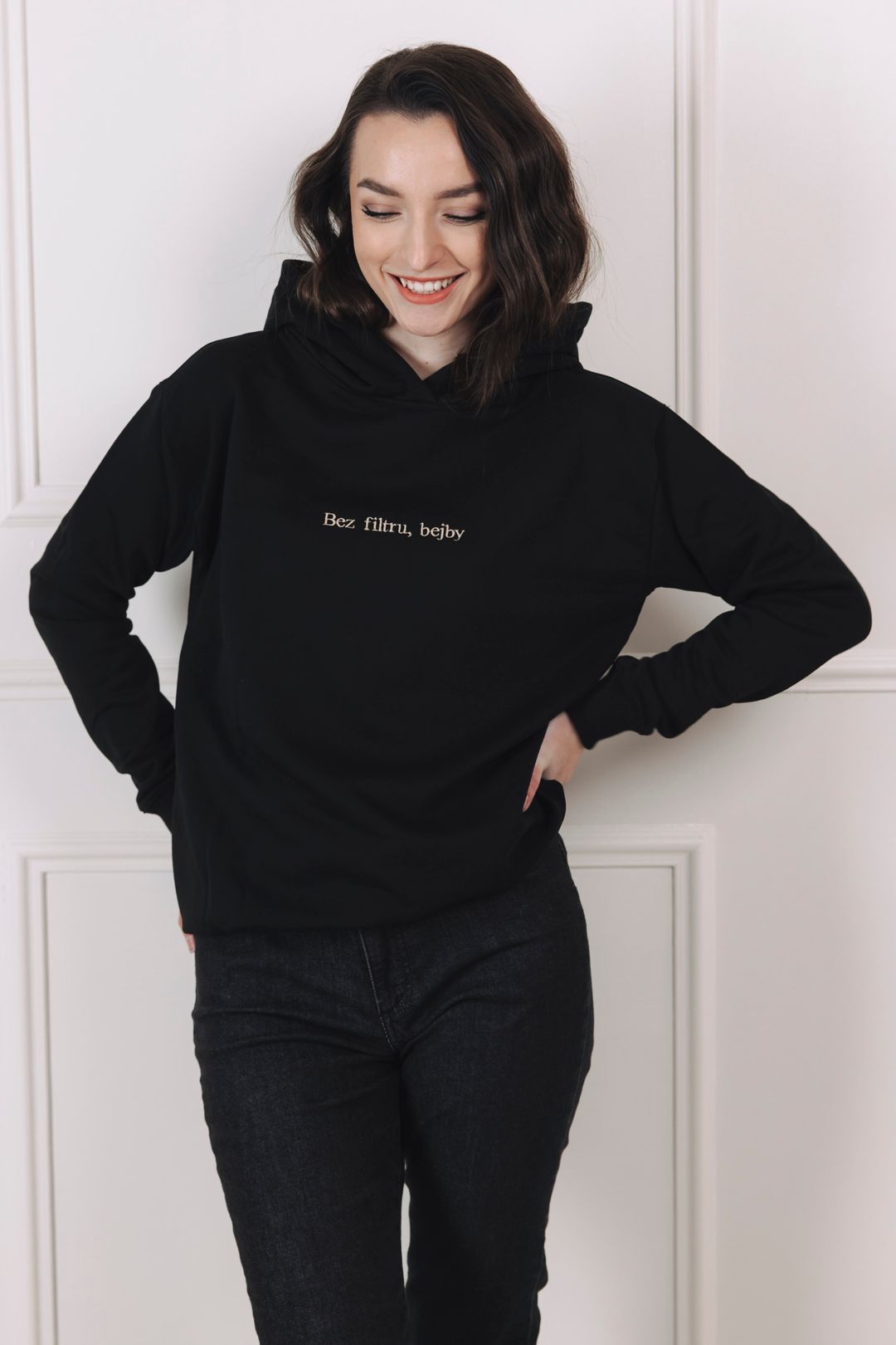Někdy, když jsou slova zbytečná, vše důležité za vás vysloví oblečení. Žijeme v rychlých časech a právě móda může být okamžitým vyjadřovacím prostředkem. Na dotek jemná, ale se silným poselstvím. Výšivka s heslem „Bez filtru, bejby“ je vyšitá přímo pro vaši duši. Funguje jako pozitivní energie a útěcha, která je s vámi i ve chvílích, kdy se zrovna cítíte ztracená v každodenních povinnostech.