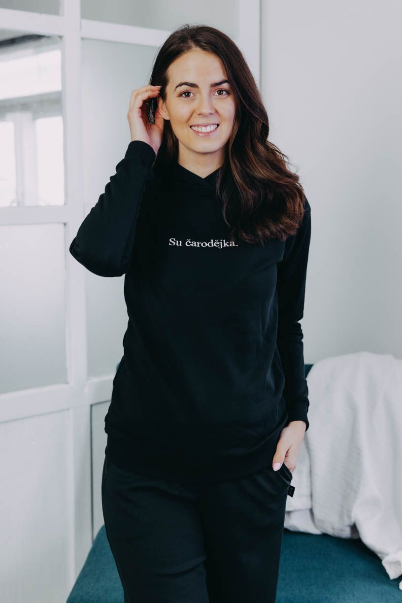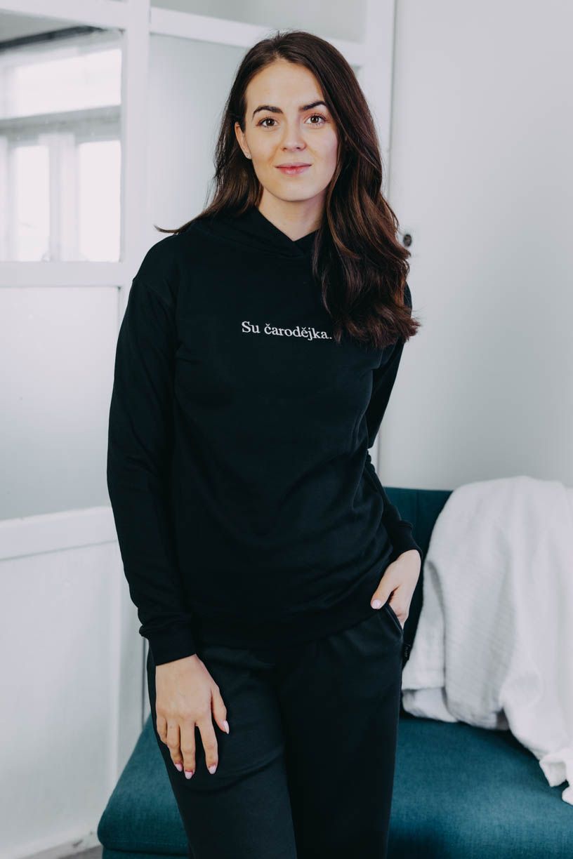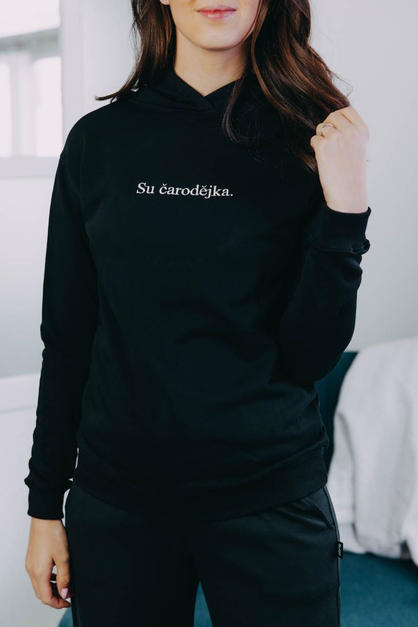 Nejenže mikina vypadá neodolatelně, ale každá mluví jasnou řečí. Velká kapuce se hodí, když zafouká nebo se cestou domů rozprší. Na dotek jemná, ale se silným poselstvím. Výšivka s heslem „Su čarodějka“ oslavuje lehkost bytí, výjimečné okamžiky s těmi nejbližšími lidmi.