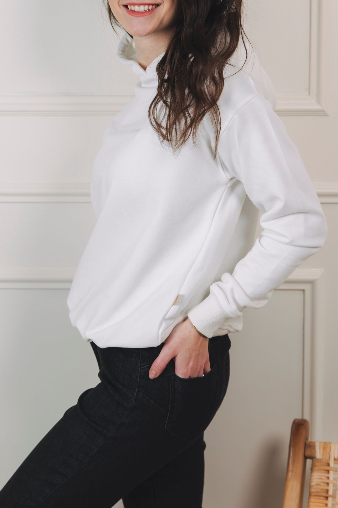 - Barva: Bílá v odstínu ecru. Jemná, elegantní a snadno kombinovatelná. Perfektní pilíř pro váš minimalistický šatník.