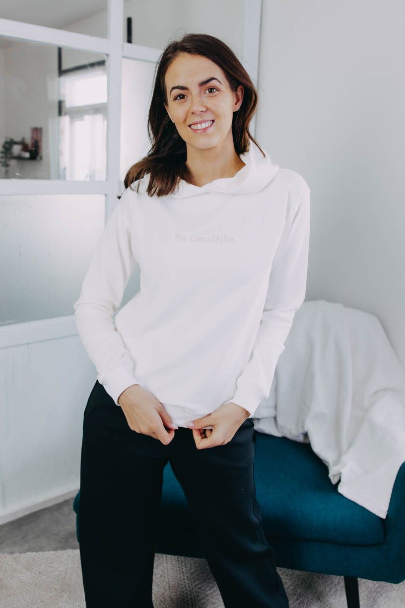 Nejenže mikina vypadá neodolatelně, ale každá mluví jasnou řečí. Velká kapuce se hodí, když zafouká nebo se cestou domů rozprší. Na dotek jemná, ale se silným poselstvím. Výšivka s heslem „Su čarodějka“ oslavuje lehkost bytí a výjimečné okamžiky s těmi nejbližšími lidmi.