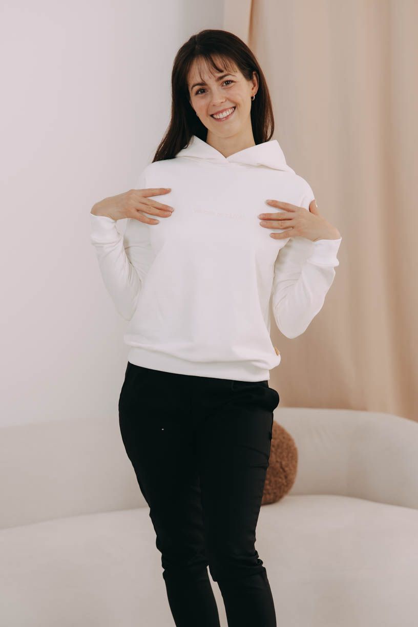 Nechte vaše oblečení promluvit. Béžová mikča Iff s velikou kapucí z příjemné bavlny to řekne za vás. Doplnili jsme ji totiž o unikátní výšivku.