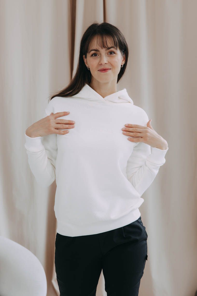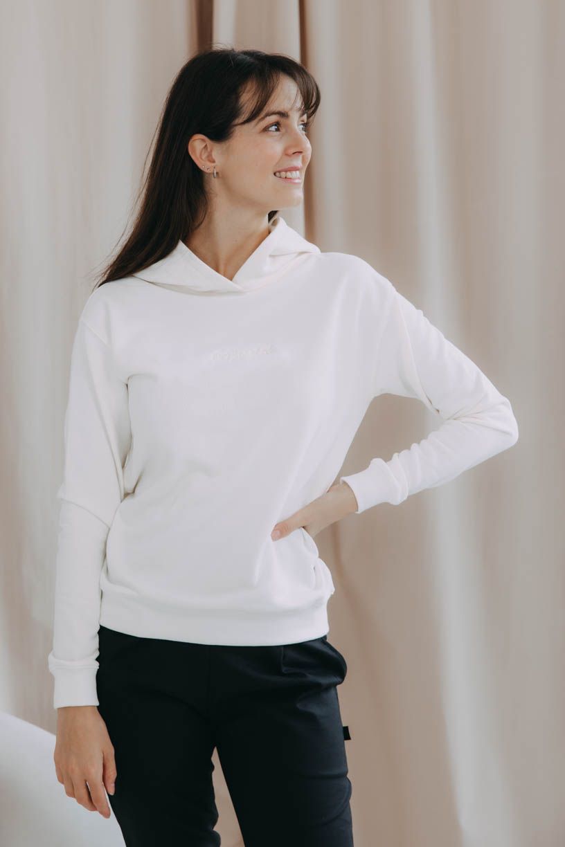 Nechte vaše oblečení promluvit. Smetanová mikča Iff s velikou kapucí z příjemné bavlny to řekne za vás. Doplnili jsme ji totiž o unikátní výšivku.