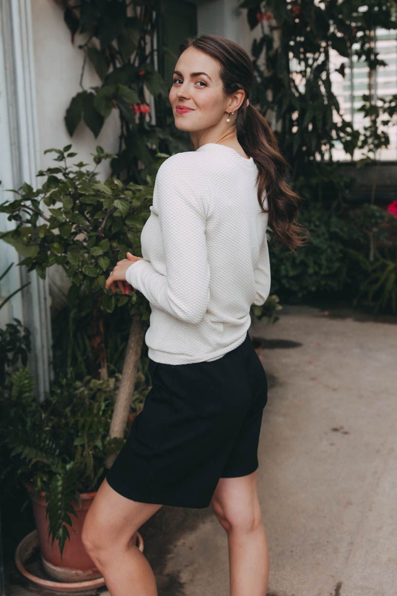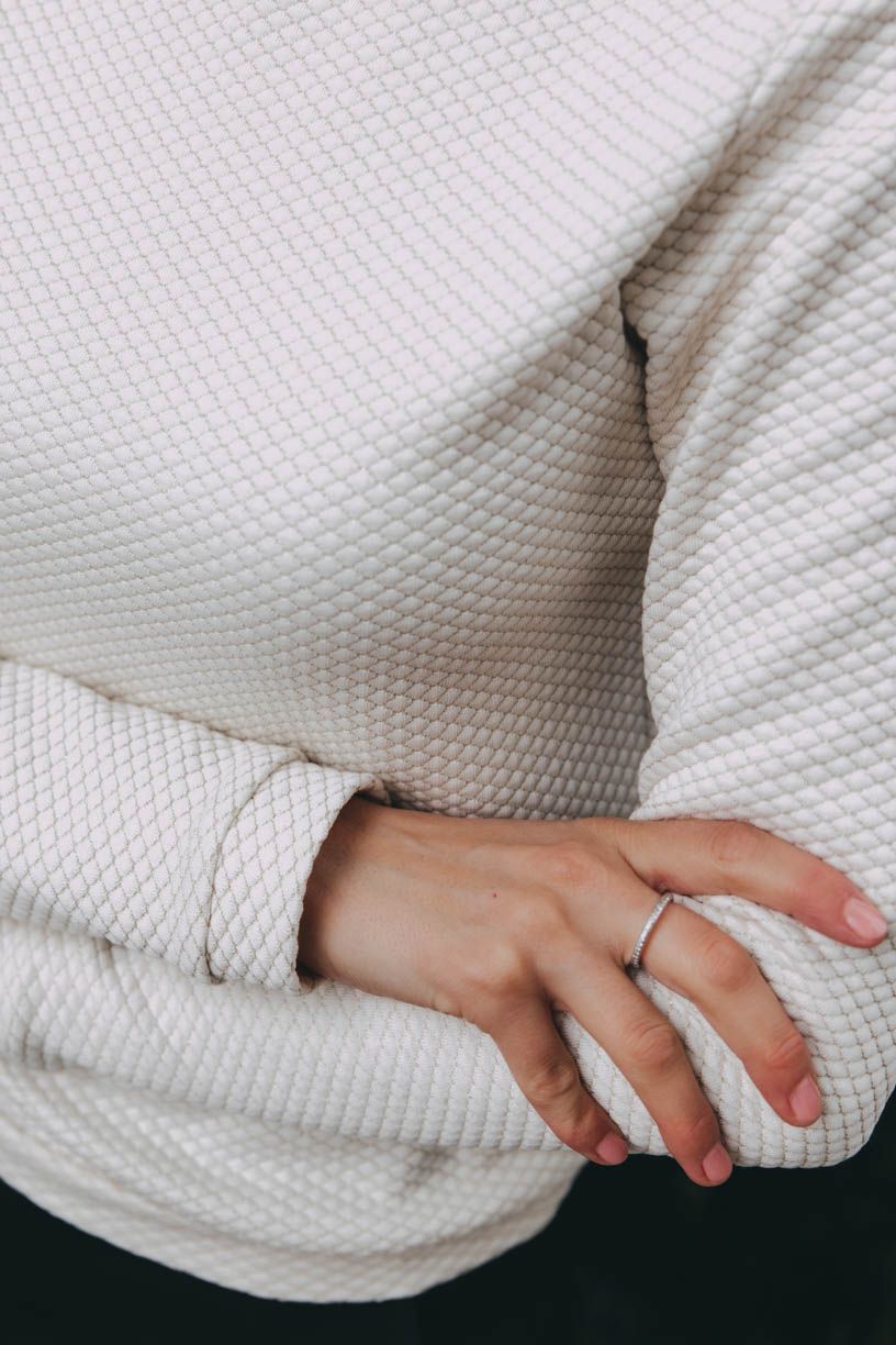 Mchanga je přiléhavější než jiné mikiny a krásně kopíruje postavu. Přírodní materiál zajistí dlouhou životnost a ecru odstín skvěle zapadne nejen do kapsulového šatníku.