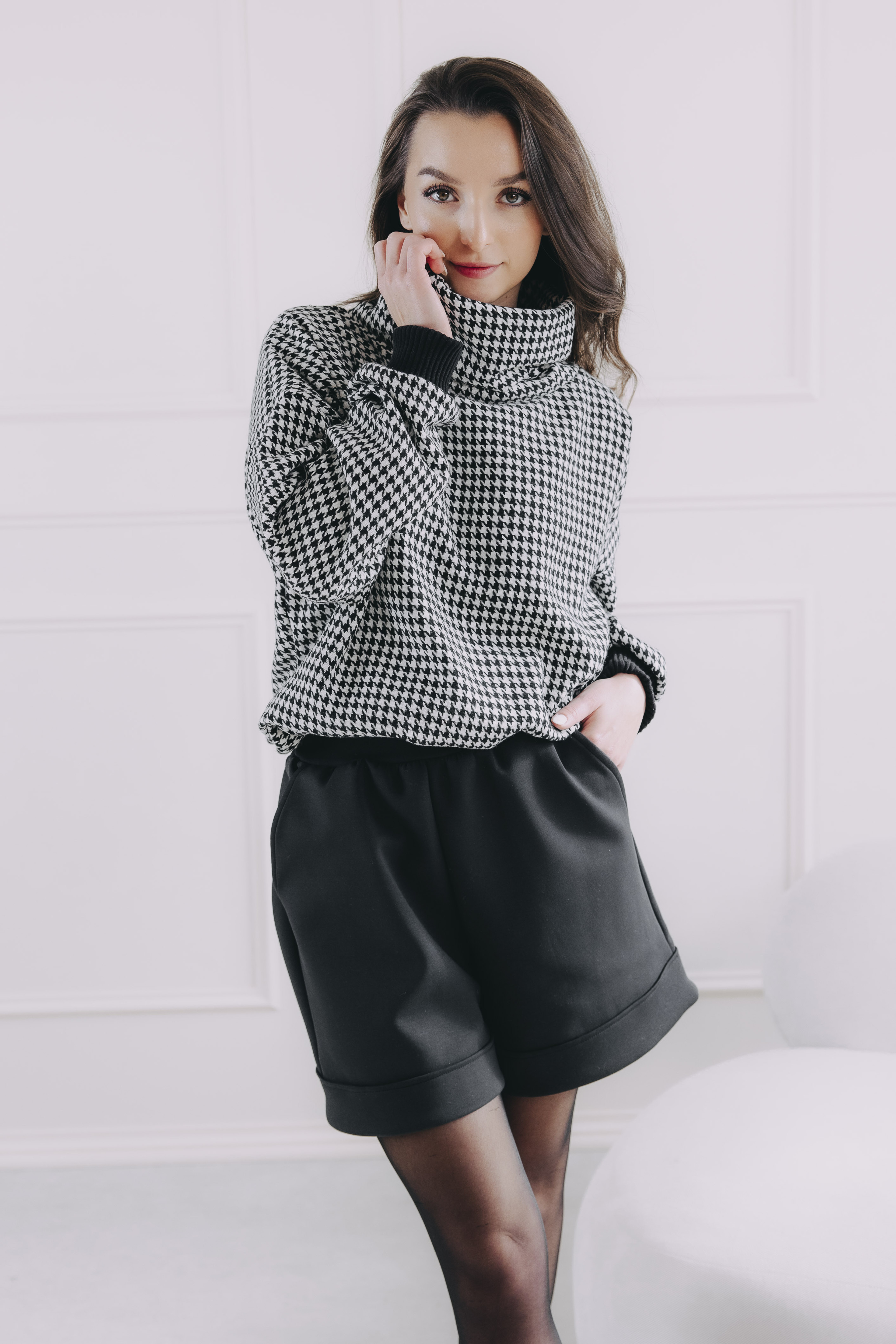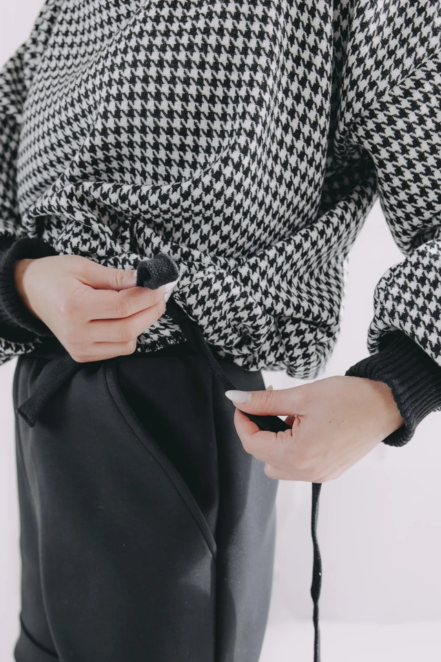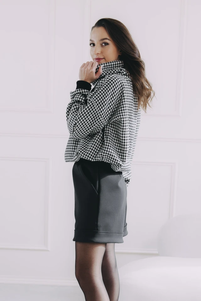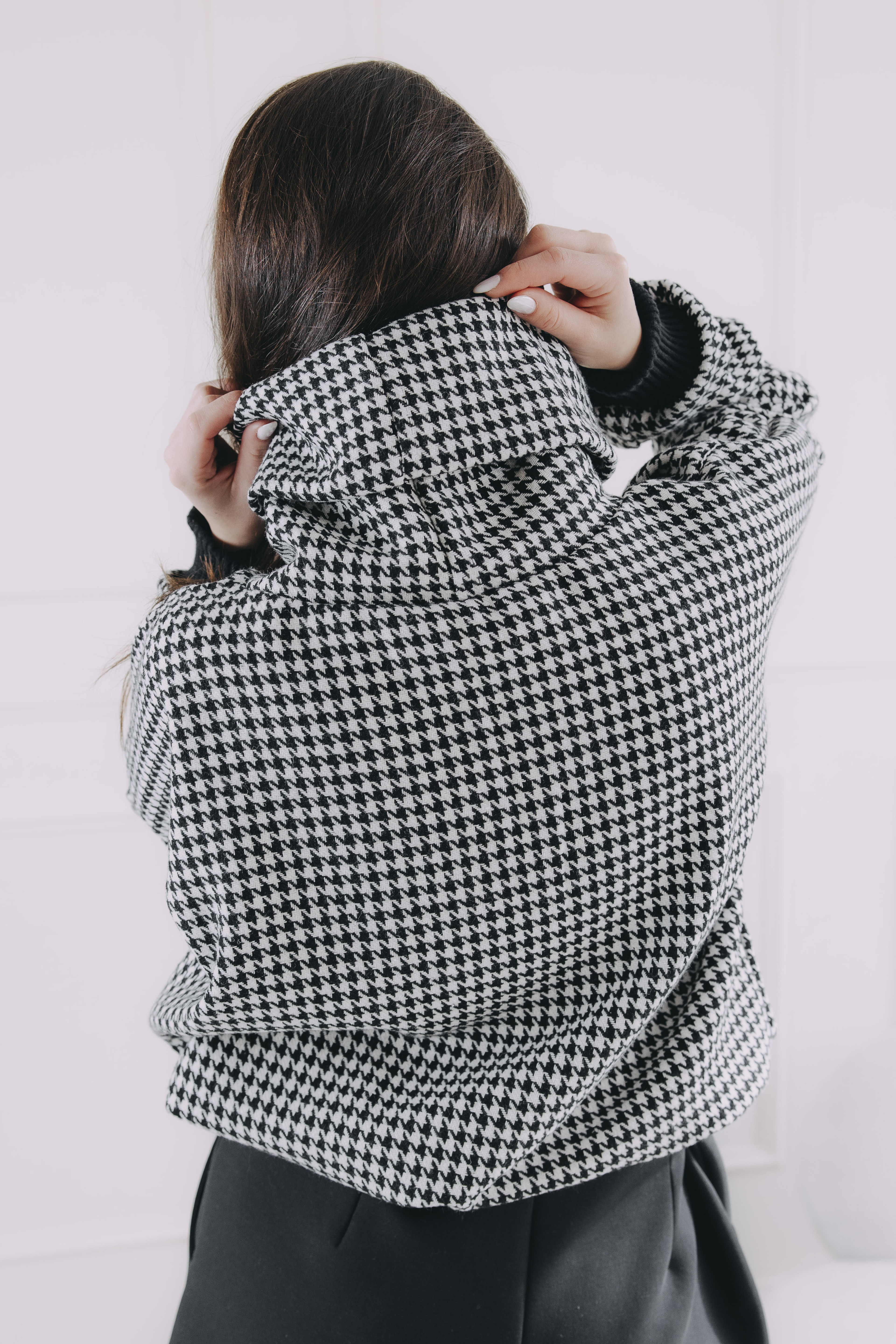 - Vzor: Ikonický vzor kohoutí stopy v černobílé – nadčasová elegance, která se snadno kombinuje.