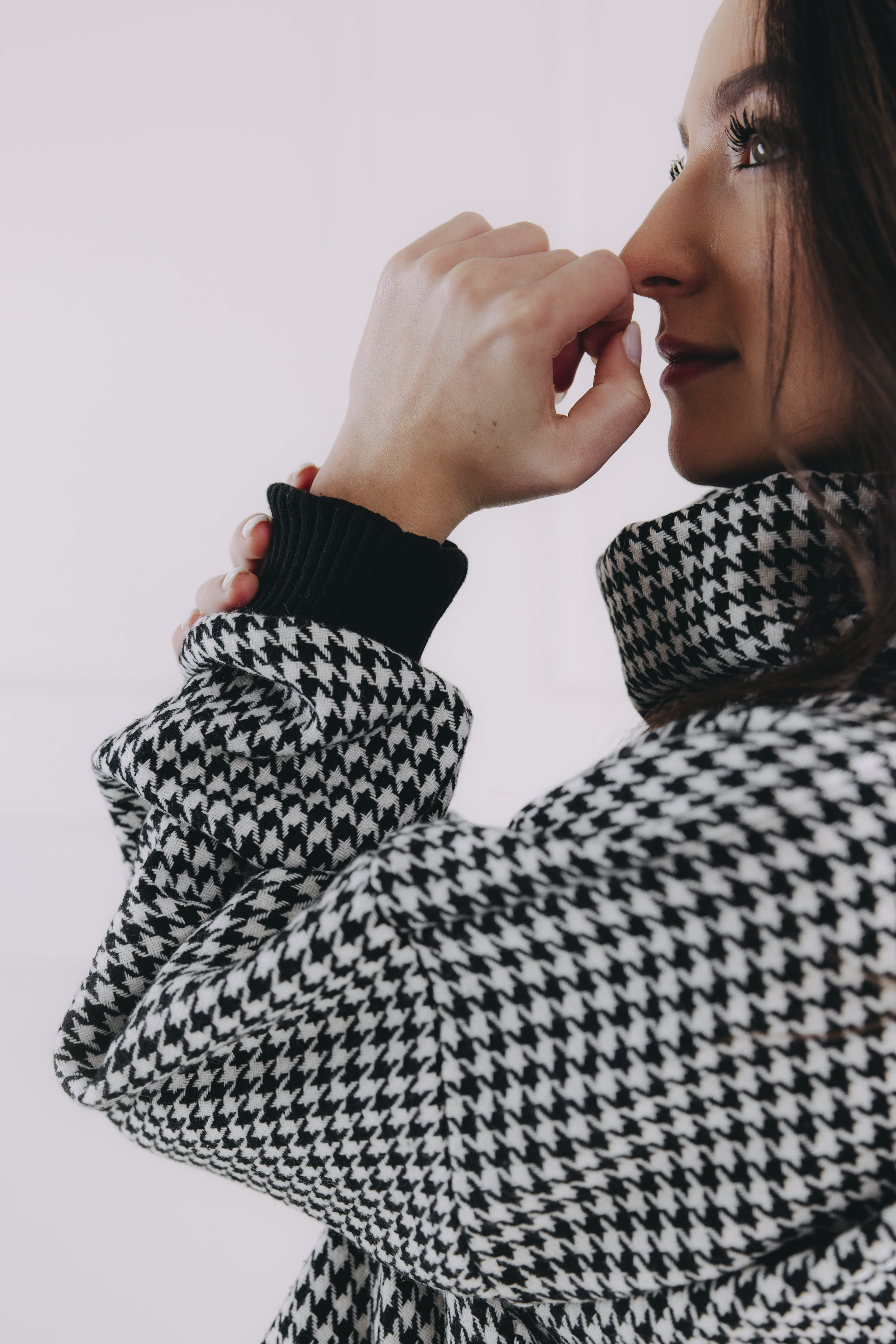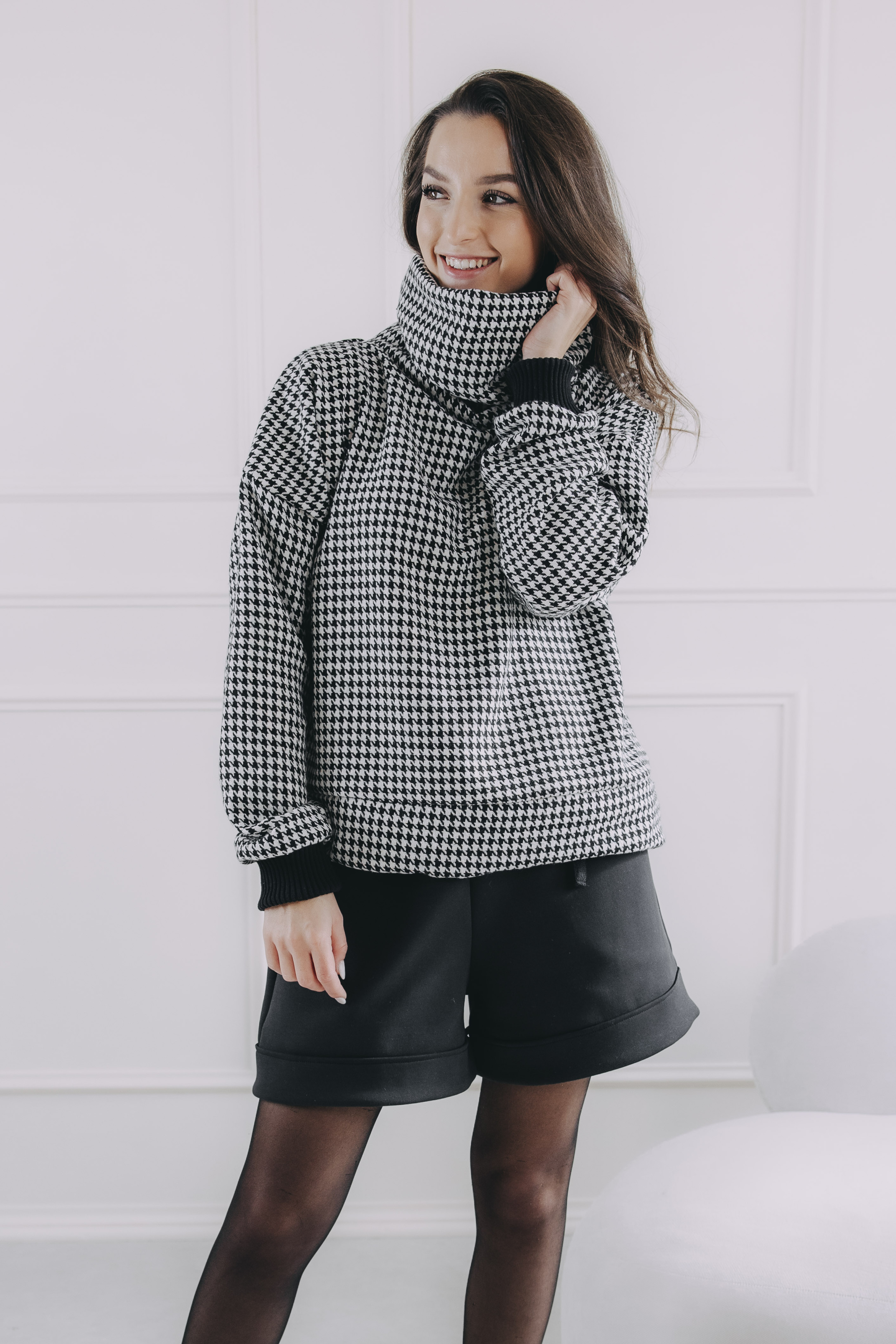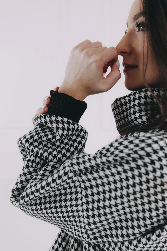 - Vzor: Ikonický vzor kohoutí stopy v černobílé – nadčasová elegance, která se snadno kombinuje.