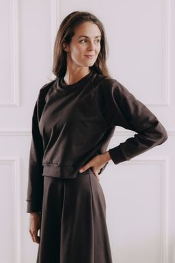 - Střih: Mikina je volnějšího střihu a lehce cropnutá, takže lichotí postavě a snadno se kombinuje i s kousky s vyšším pasem. Protože nemá kapuci, je navíc skvělá pod jakýkoli svršek. Raglánové rukávy zajišťují volnost pohybu a dodávají outfitu sportovně-elegantní vzhled.