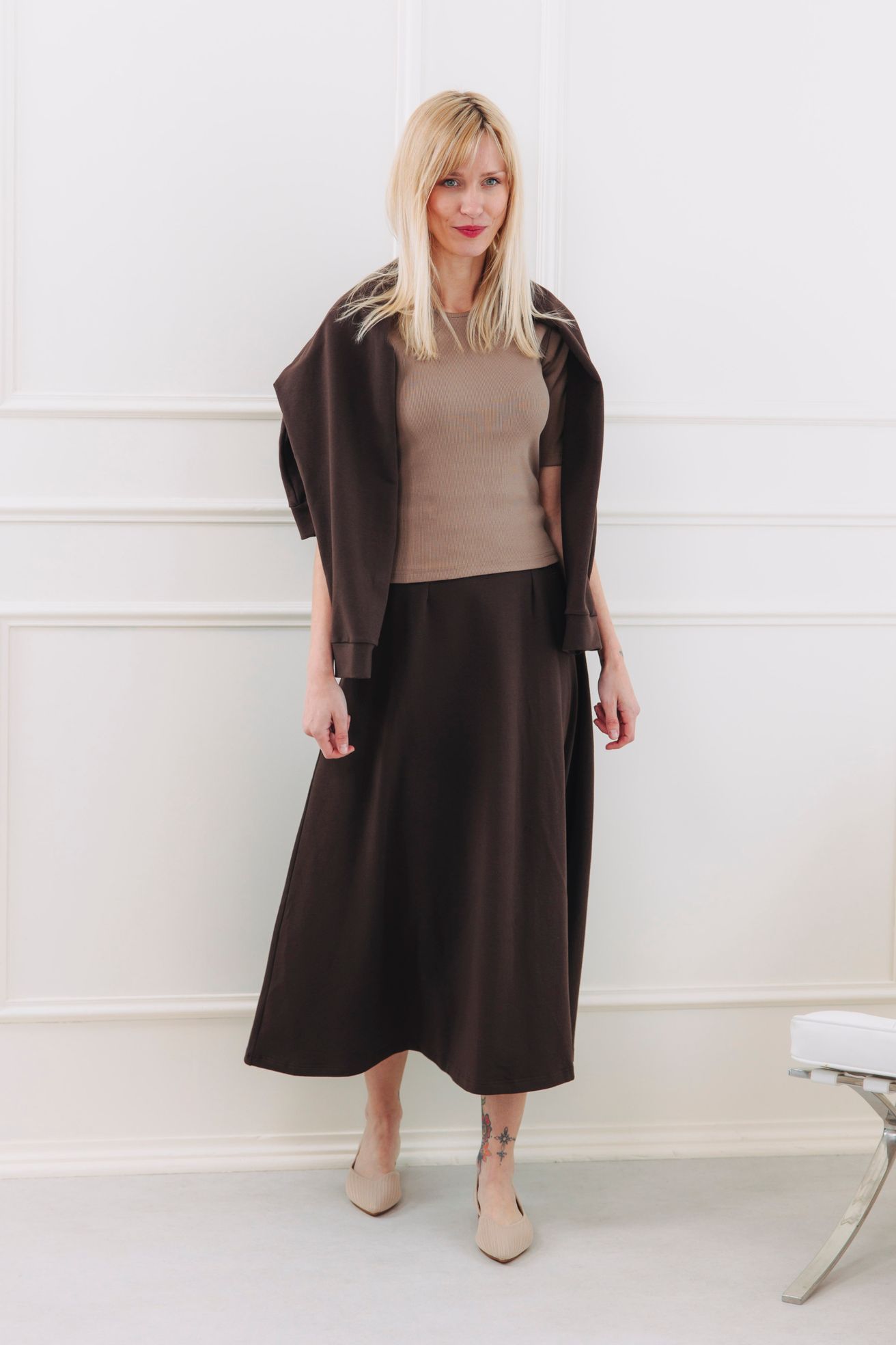 sukní Mosi. Vytvoříte si tak sladěný outfit, který se hodí do práce, na kávu i na dlouhé cesty. Jste v souladu s myšlenkou slow fashion? Hlásíme absolutní shodu pro její nadčasovost a snadnou kombinovatelnost.