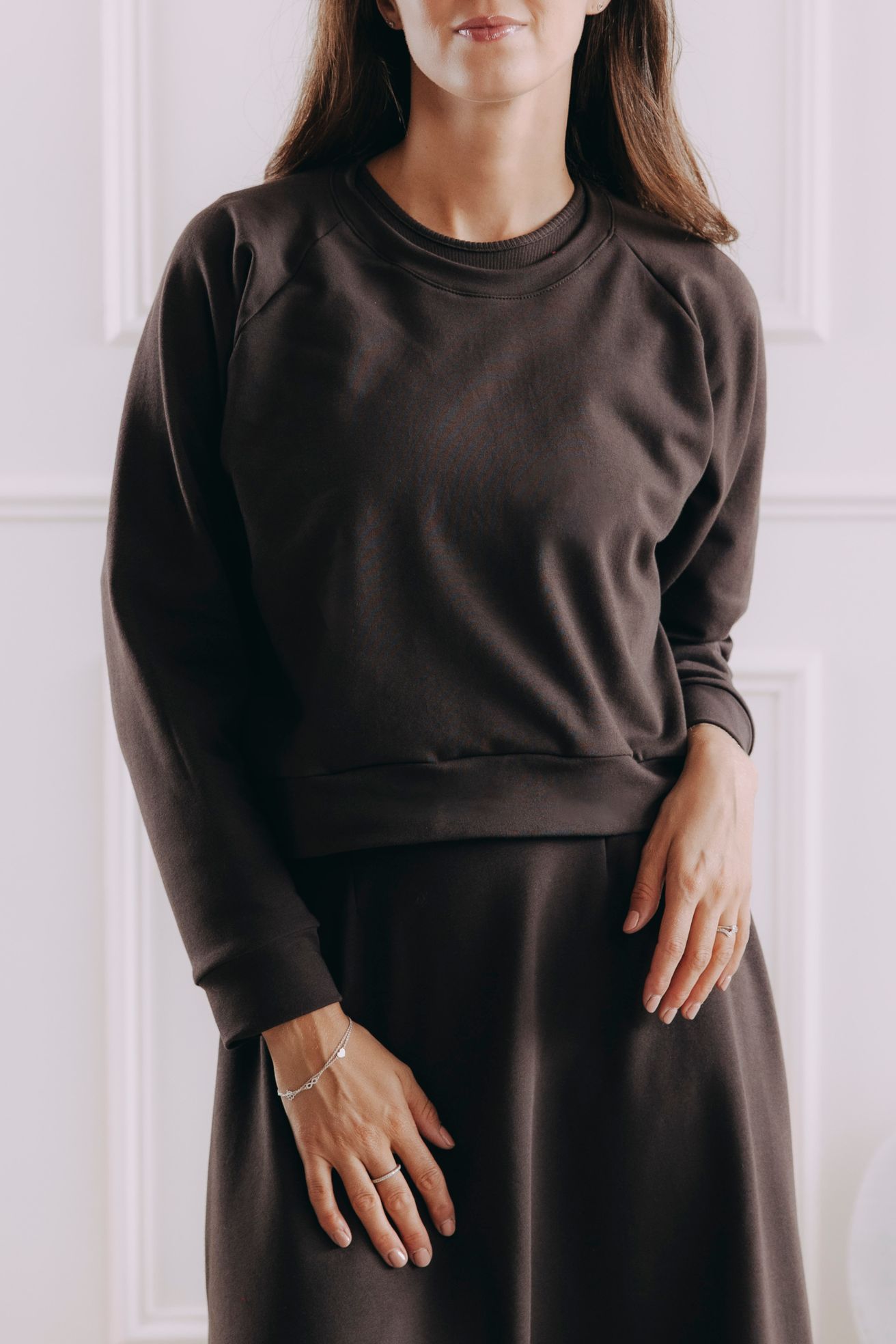 - Střih: Mikina je volnějšího střihu a lehce cropnutá, takže lichotí postavě a snadno se kombinuje i s kousky s vyšším pasem. Protože nemá kapuci, je navíc skvělá pod jakýkoli svršek. Raglánové rukávy zajišťují volnost pohybu a dodávají outfitu sportovně-elegantní vzhled.