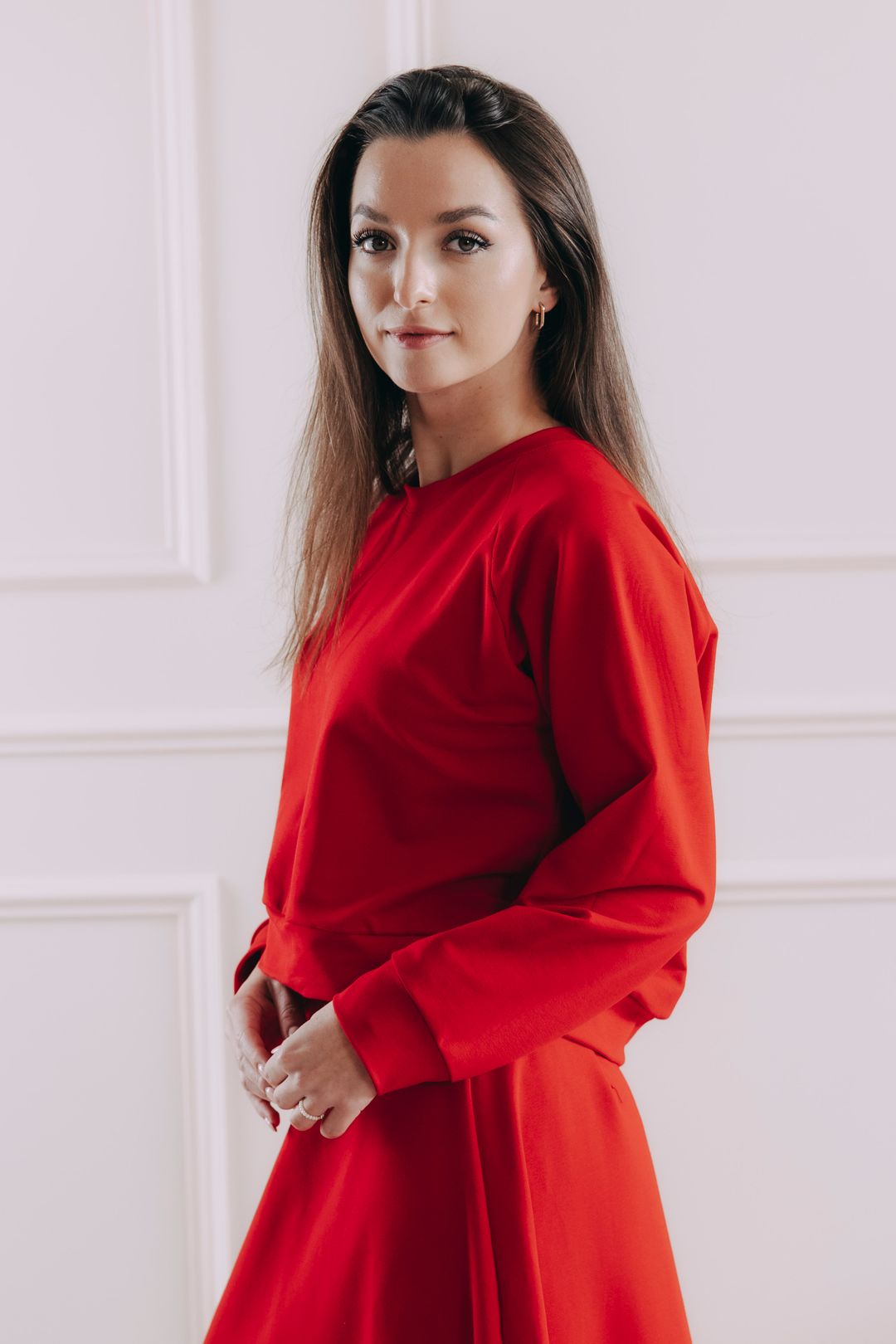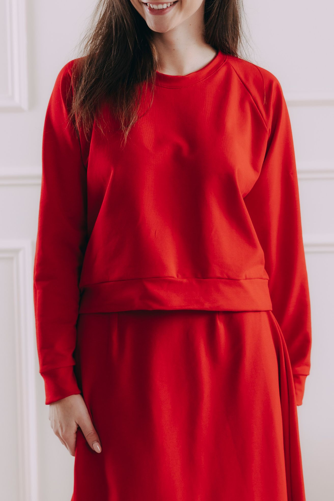 - Střih: Mikina je volnějšího střihu a lehce cropnutá, takže lichotí postavě a snadno se kombinuje i s kousky s vyšším pasem. Protože nemá kapuci, je navíc skvělá pod jakýkoli svršek. Raglánové rukávy zajišťují volnost pohybu a dodávají outfitu sportovně-elegantní vzhled.