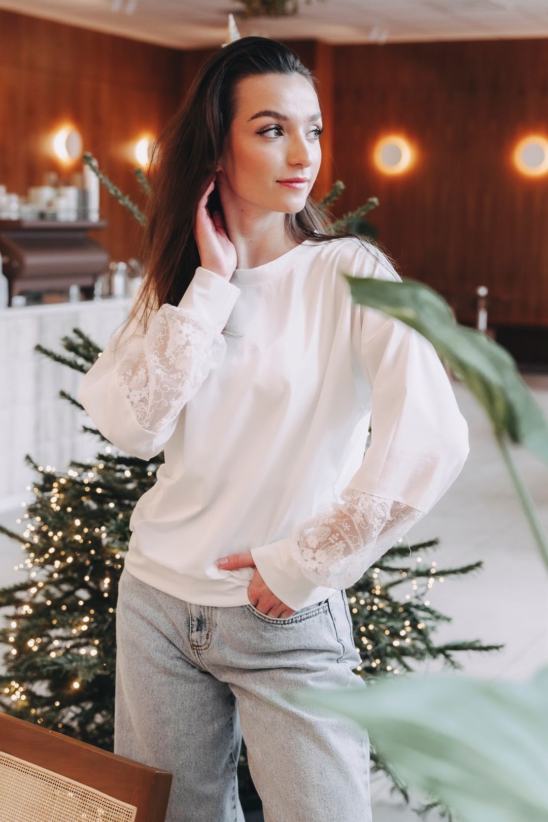 Mikina Nyah kombinuje pohodlí s elegantní krajkou na rukávech. Stylová, univerzální a ideální k džínám i sukni.