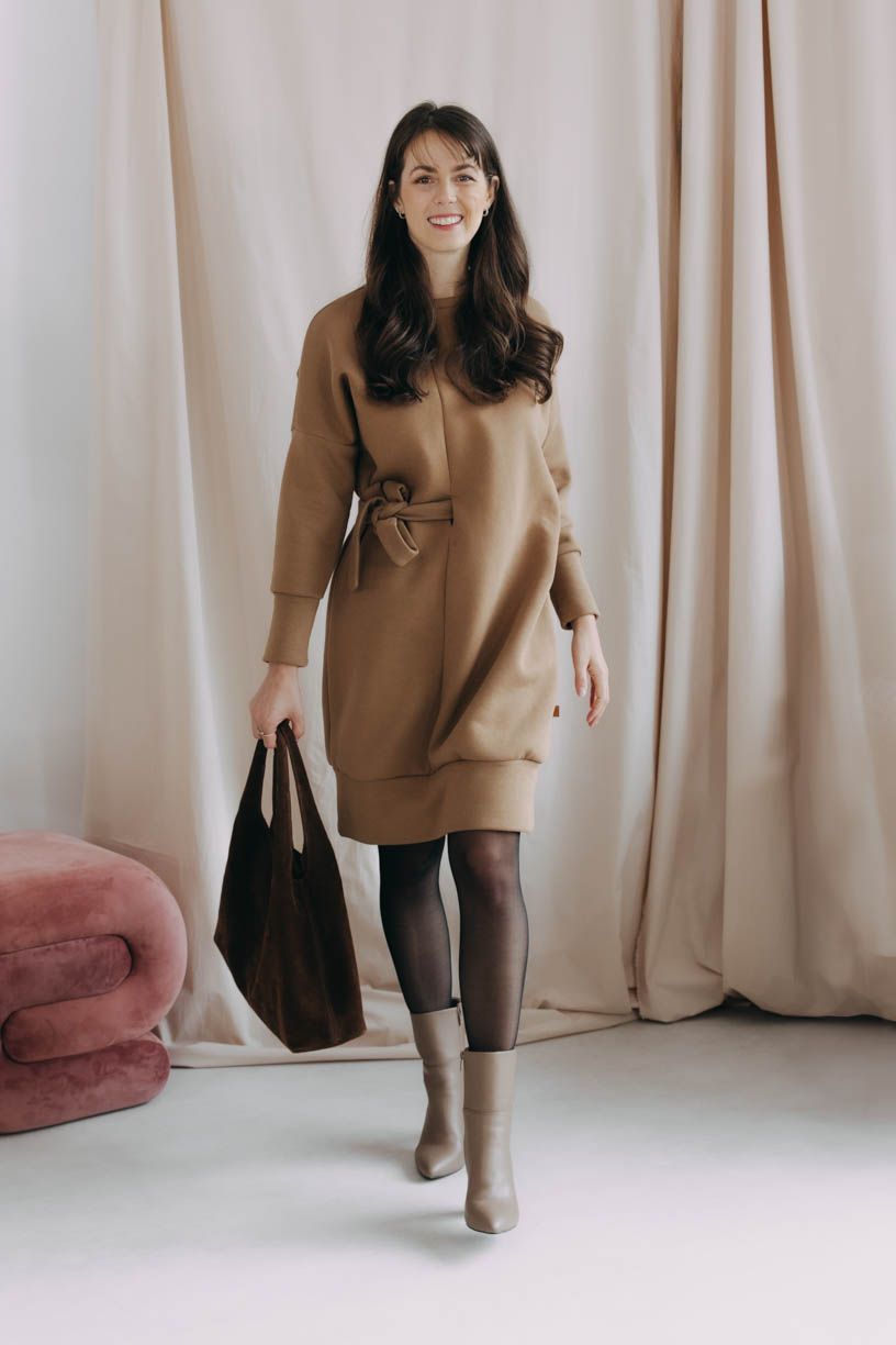 Mikinové šaty Enam jsou jasným důkazem toho, jak pohodlí sluší. Nejenže se v nich cítíte jako v bavlnce (aby ne, když vás hřeje prémiová počesaná bavlna), ale taky velmi žensky. A to i přesto, že jsou volnějšího střihu à la mikča. Na přední straně je totiž zdobí nápaditý pásek ze stejného materiálu, provlečený na dvou místech tak, že díky němu vytvoříte opravdu efektní dojem.