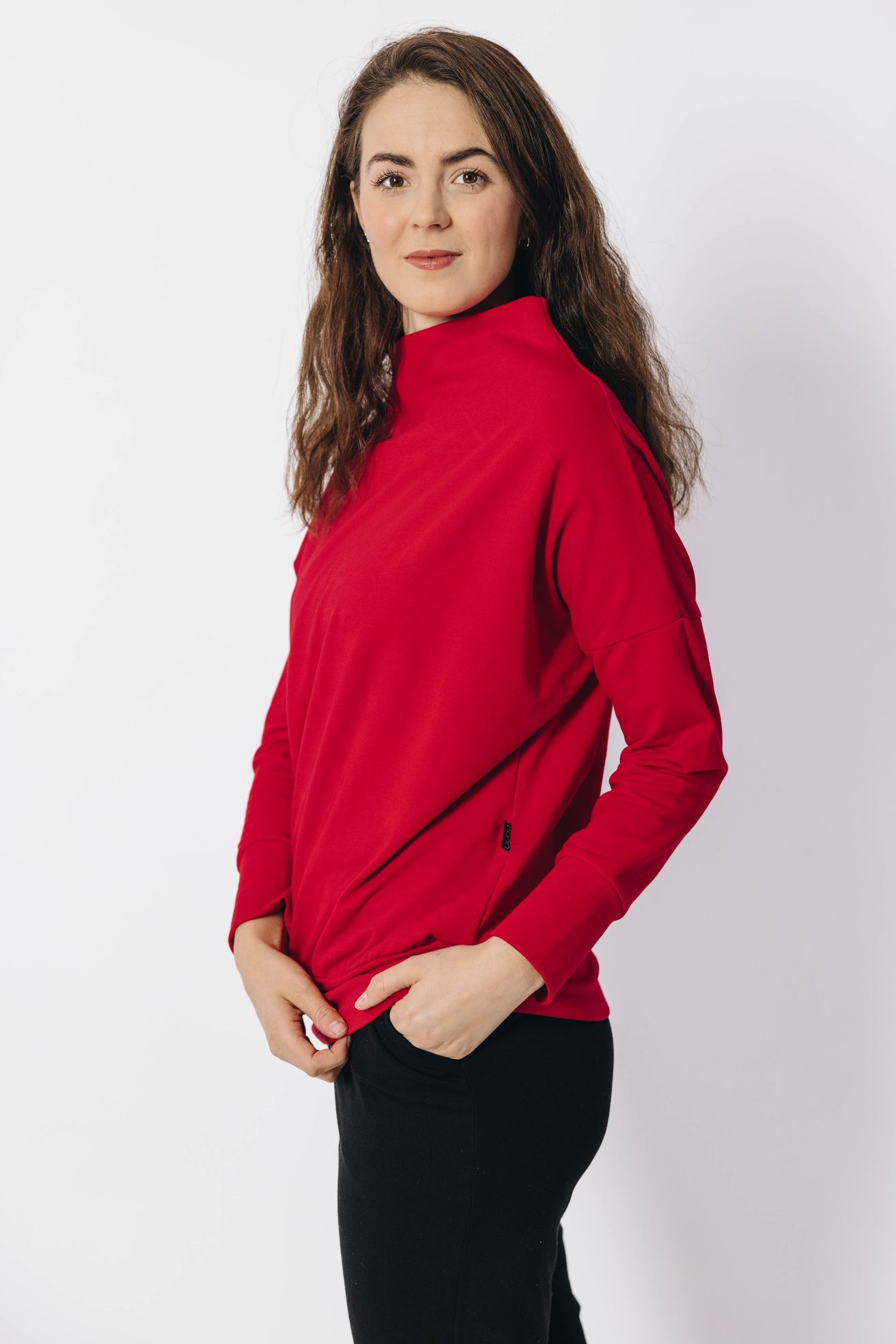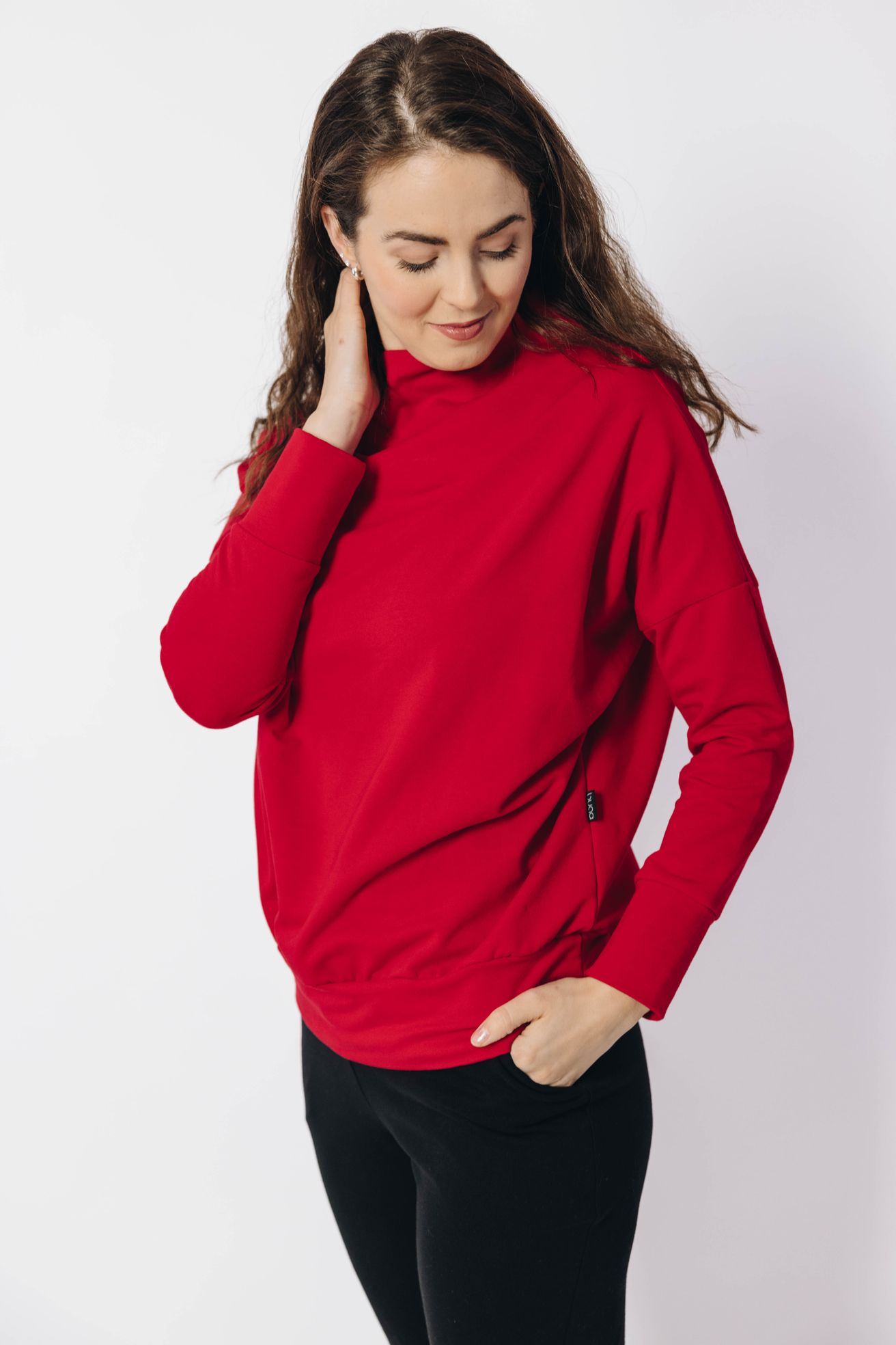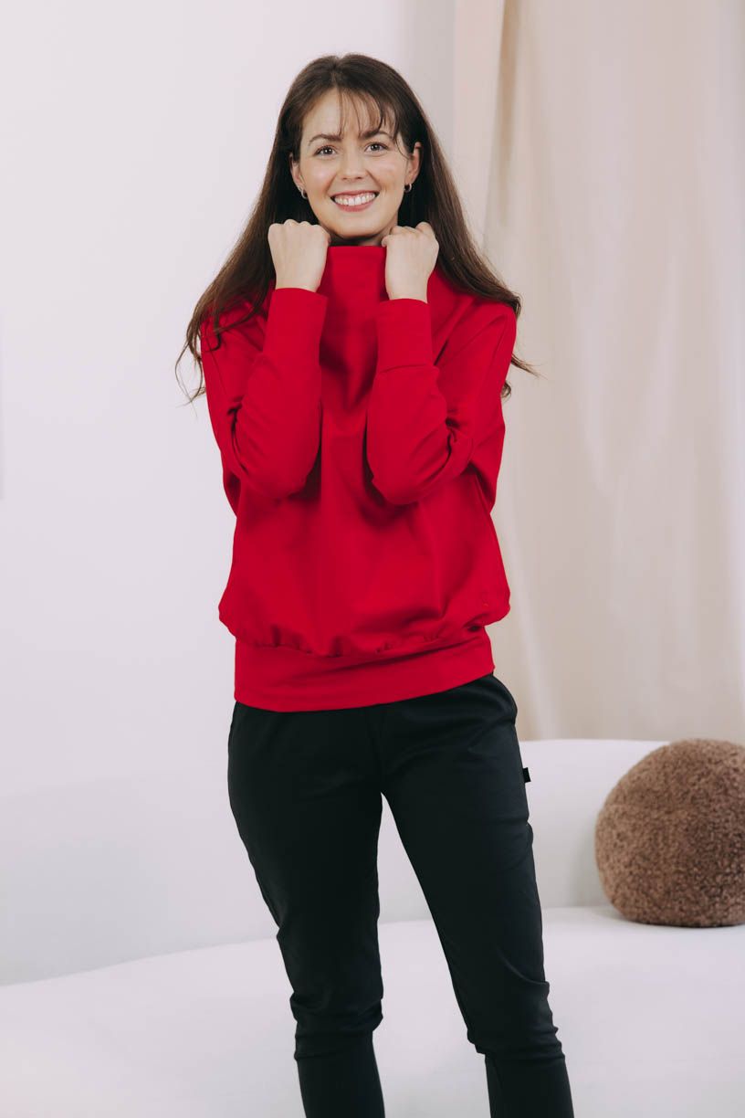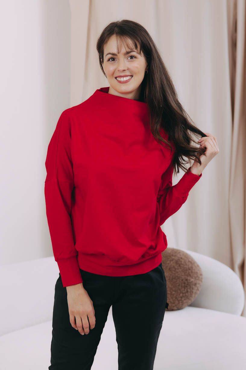 Mikina Izis Red s netopýřími rukávy a stojáčkem vychází střihově ze stejnojmenných svetrů. Jen materiál jsme vyměnili za prémiovou bavlnu OEKO-TEX.