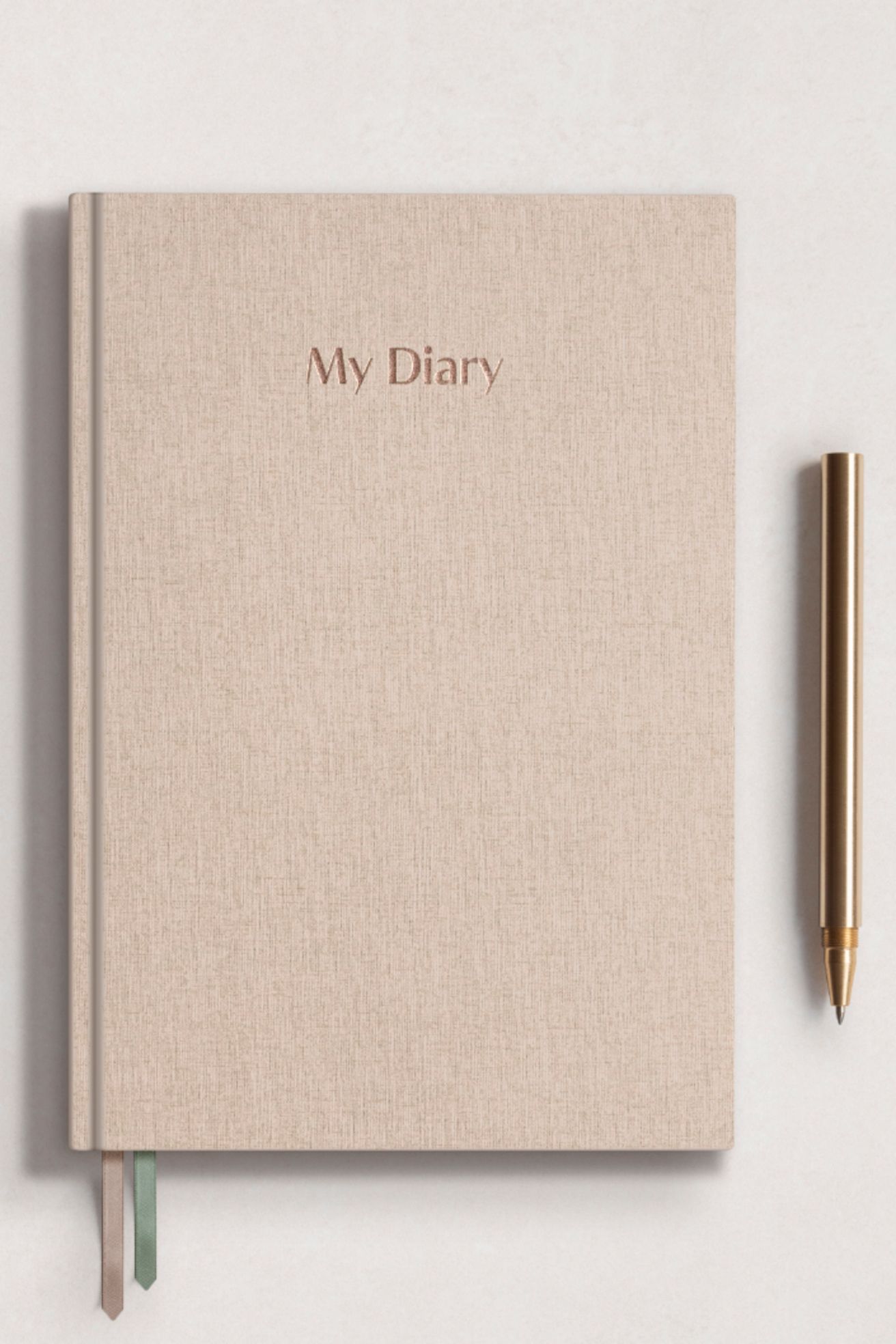 Diář v lněné vazbě s bronzovou ražbou, přehledný a příjemný na používání každý den.