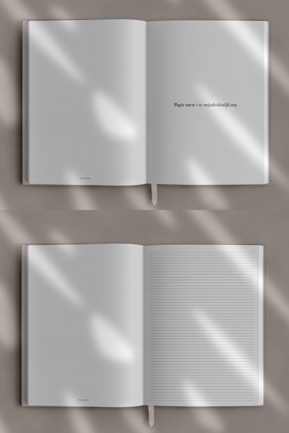 Je bez dat a bez struktury – jen volné stránky, kde se střídají linkované a čisté listy. Hodí se pro nápady, skici, projekty, seznamy i tiché myšlenky, které potřebují vlastní místo. Může být i tajným deníčkem.