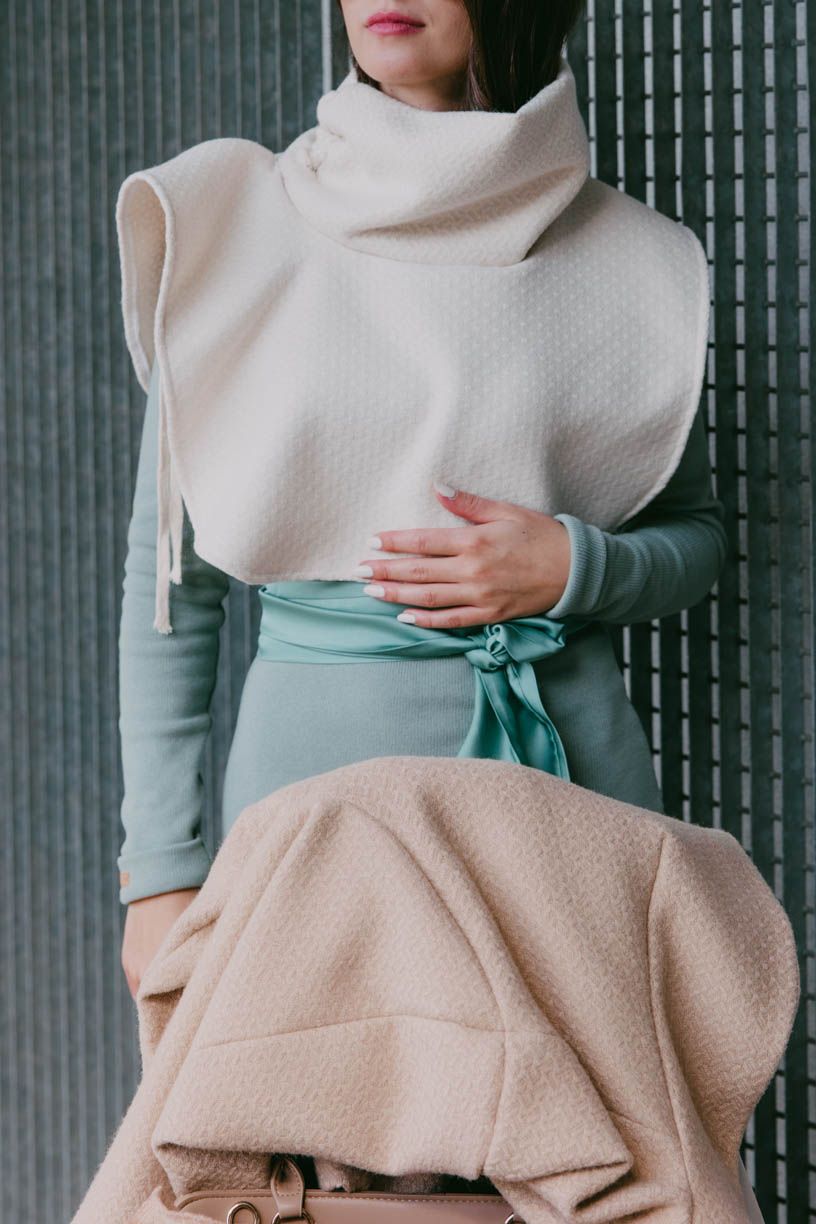 Nákrčník jsme ušili ze stejného materiálu jako kabátky Sable a Tawil – a vlastně jako takový doplněk k nim. Stačí vybrat barevnou kombinaci a základ pro stylový outfit v podzimních a jarních dnech máte hotový.