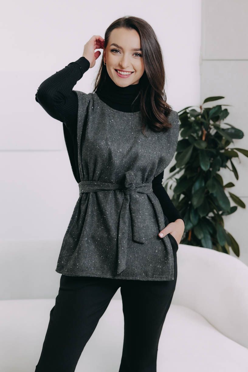 (Ne)vesta Taifa Grey Nop je stylový kousek, který přidá vašemu outfitu eleganci a pohodlí. Tento „přehoz” je vázaný v pase, což vytváří krásnou siluetu, a je ideální pro vrstvení.