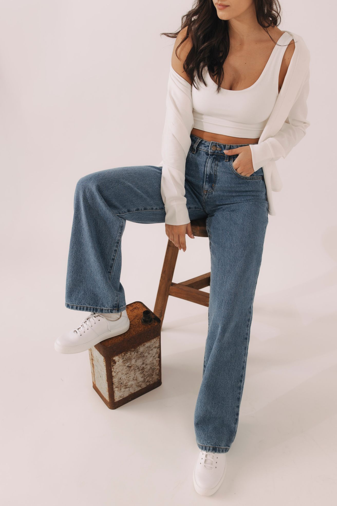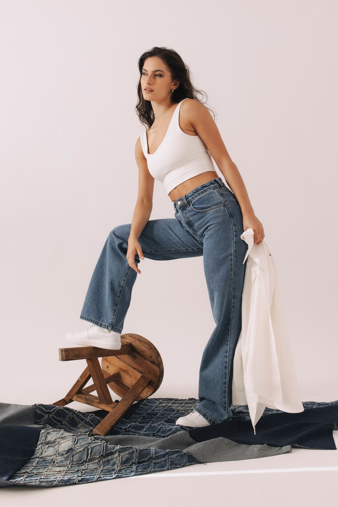 Vždy zdůrazněte vysoký pas. Klíčem je zastrčit top (úplně, anebo french tuck) nebo zvolit krátký cropped svetr či bomber. Tím vizuálně prodloužíte nohy. A že to tyto džíny opravdu umí, potvrzuje i naše nejnižší kolegyně Monča, která je okamžitě povýšila na základ svého minimalistického šatníku a snaží se tvářit, že „jen“ vyrostla.