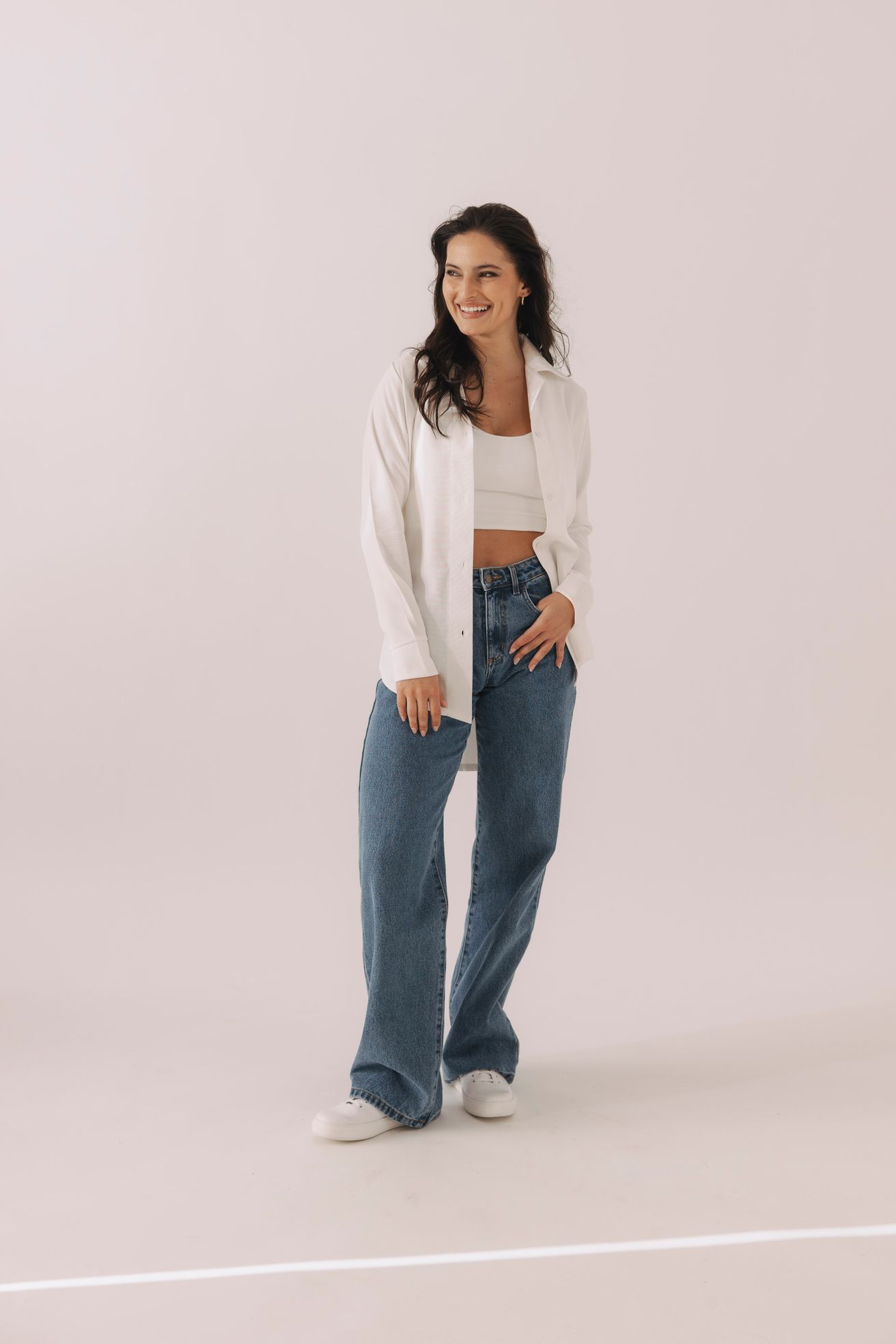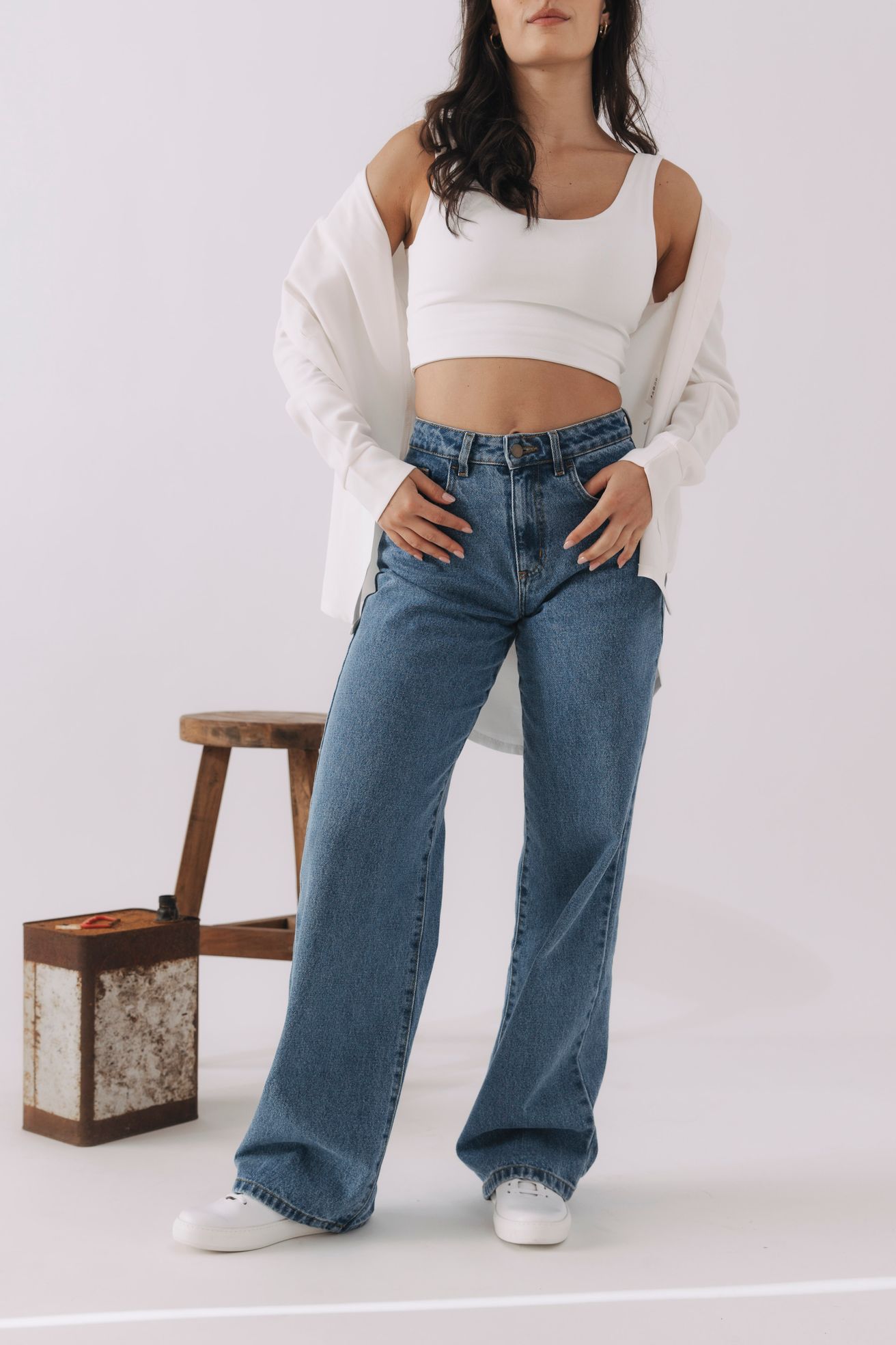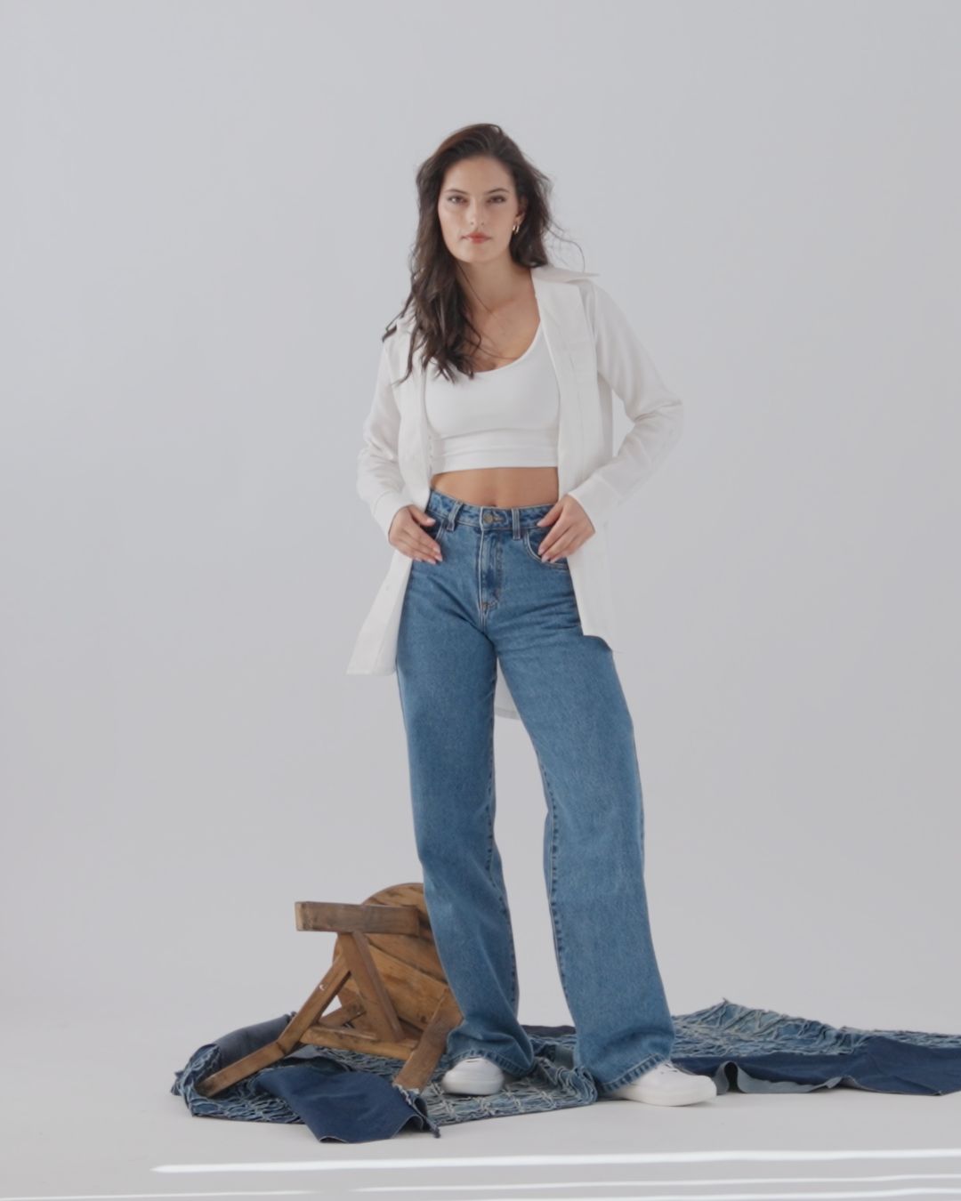 Proč to funguje: Džíny v kombinaci s klasickou bílou košilí jsou esencí ležérní elegance.