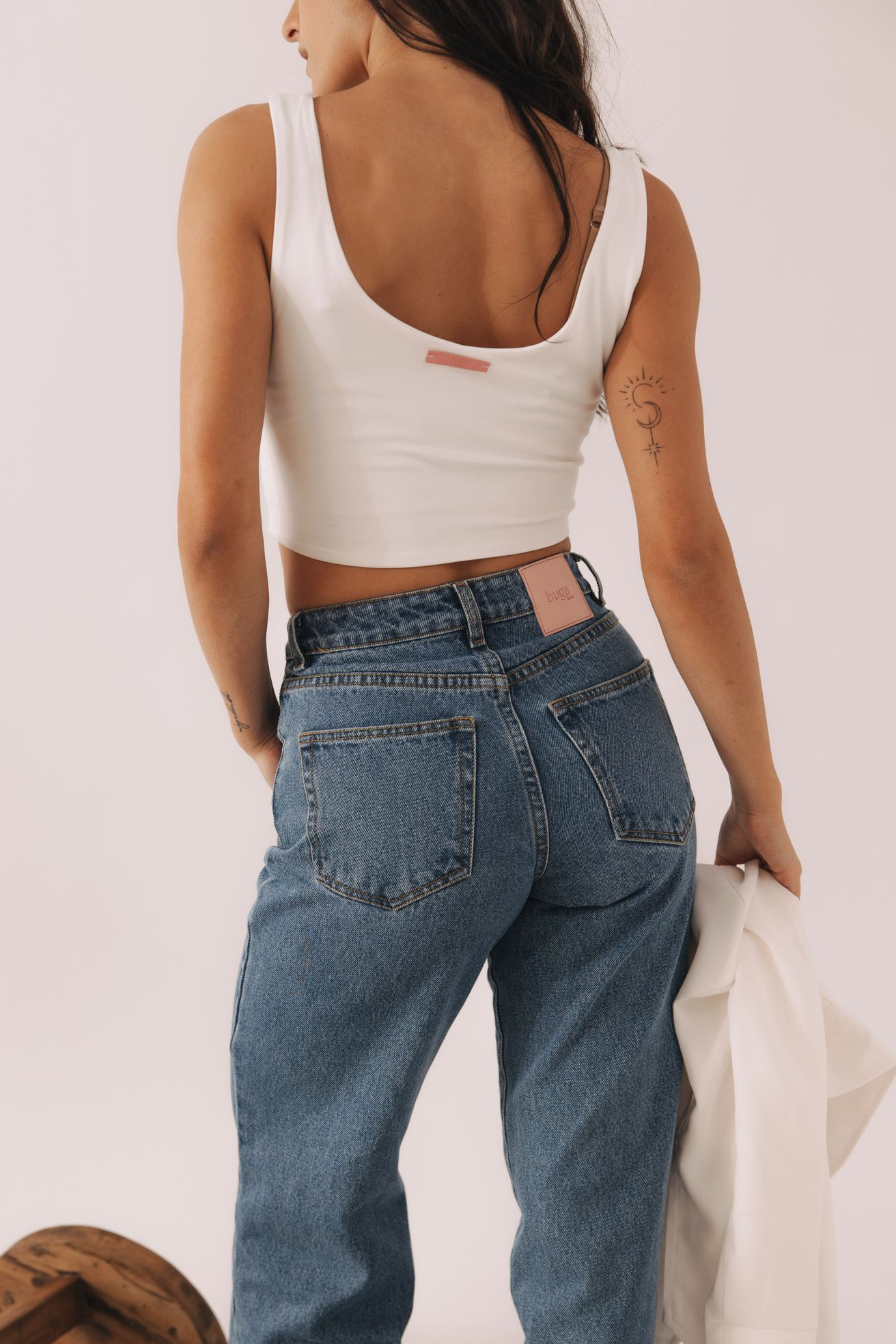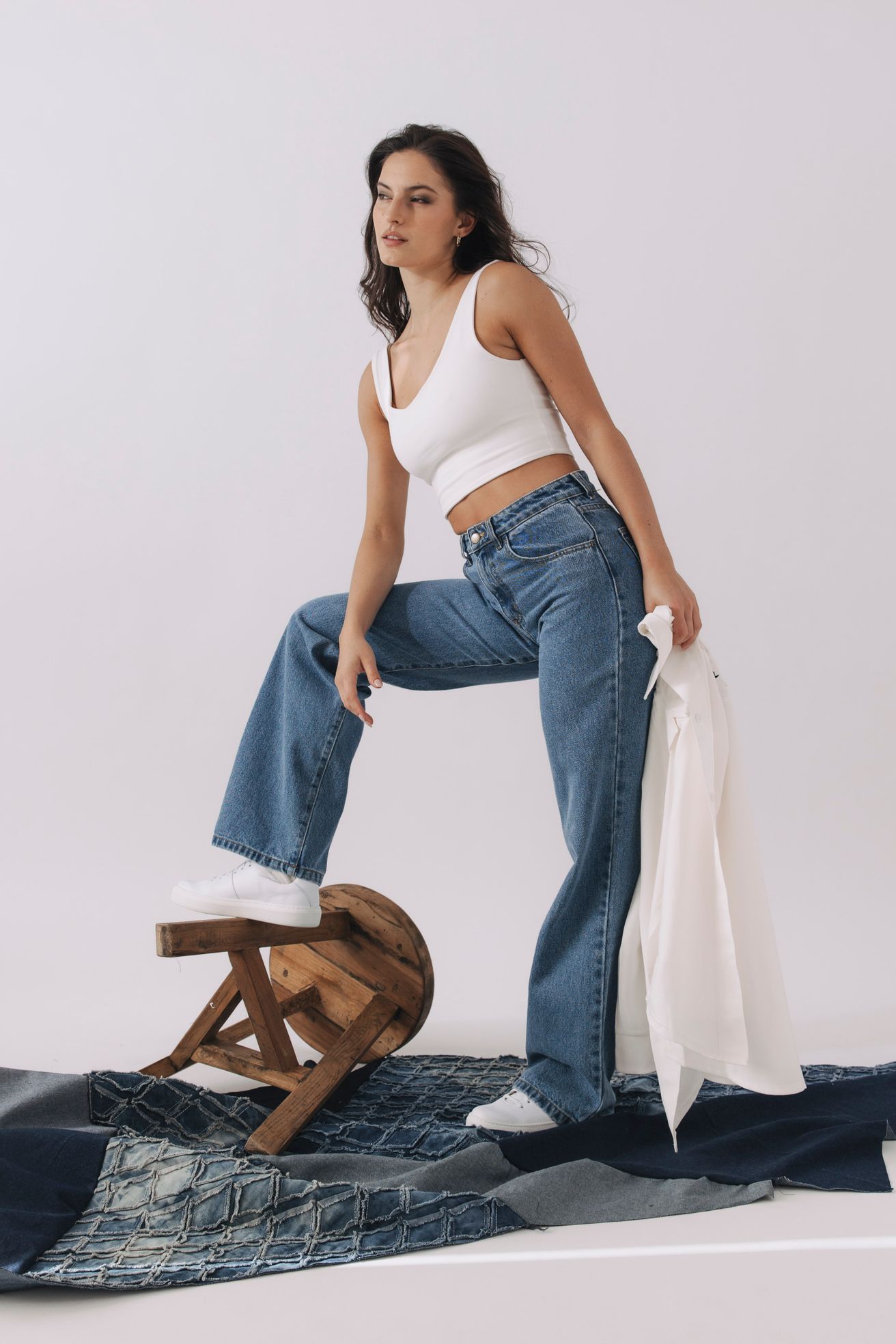 Pro zachování autentického tvaru a siluety volíme pevný nestrečový denim s vysokým podílem bavlny. Džíny tak krásně drží tvar, formují postavu a s nošením získávají jedinečnou patinu.