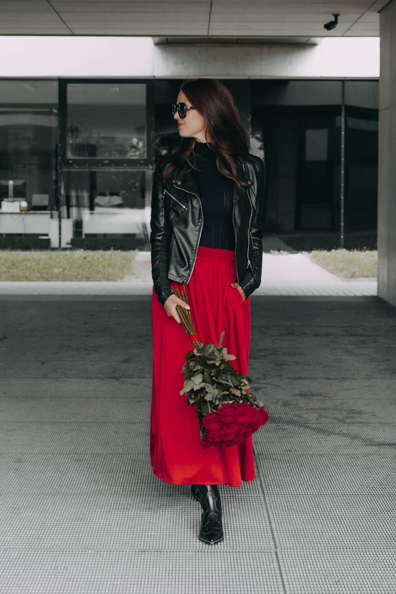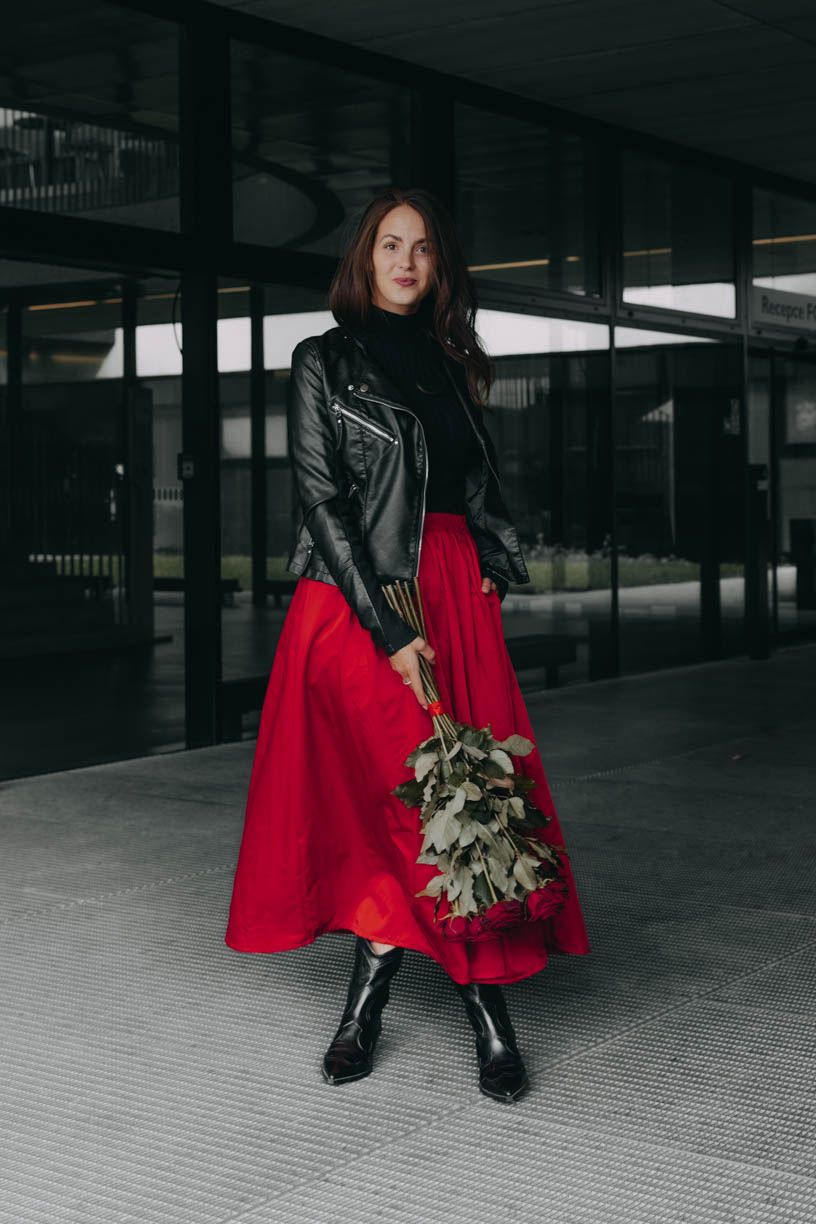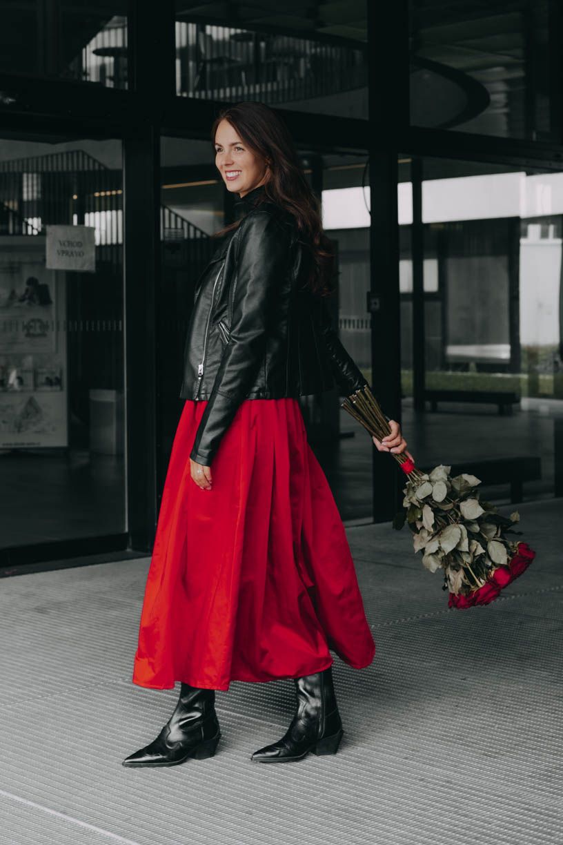 Pojďte do toho světa vnést trochu toho pozdvižení! V dravé kombinaci červené a černé nezůstanete bez povšimnutí ani na okamžik. Je to rozhodně osvědčená kombinace pro ty, které o sobě chtějí dát vědět, a v sukni Tumpe se vám to podaří zcela bez námahy. Náruživá červená ozdobená elegantním řasením skvěle kontrastuje s černým obepnutým rolákem Elton. Pro větší efekt doplňte outfit kůží v podobě bundy a bot, budete vypadat sofistikovaně, suverénně a nikiho nenecháte na pochybách, že se v módě zkrátka a jednoduše vyznáte.