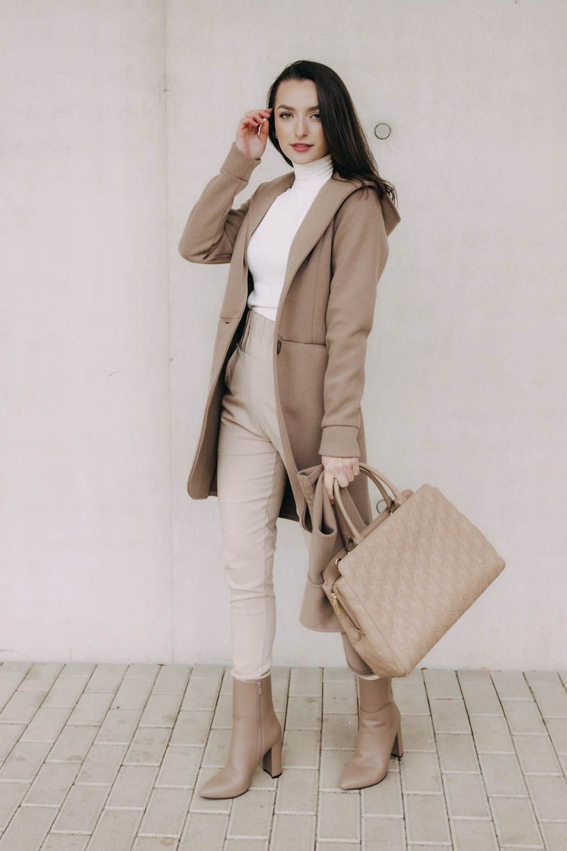 Když se zima zeptá, vy odpovíte outfitem, který spojuje barvy země a světla v dokonalou harmonii. Kombinace svěžího roláku Slam White s kalhotami Shara Creeme je oslavou nadčasové krásy a přírodních tónů. Kabát Sable v zemitém Mocha odstínu vás obklopí teplem a měkkostí. Sladěný nákrčník celý look zjemňuje a dodává mu další vrstvu pohodlí a elegance. Kombinace s kotníčkovými botami a velkou kabelkou působí nenuceně a zároveň ukazuje váš sofistikovaný styl.