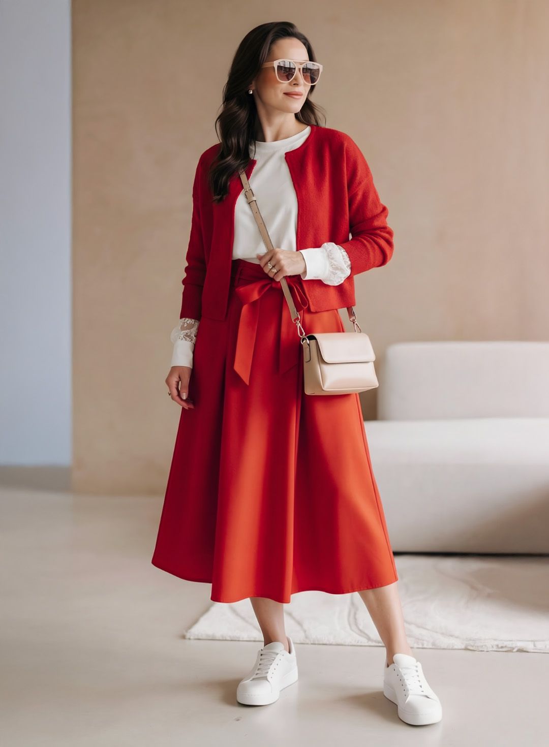 Objevte dokonalou harmonii mezi pohodlím a ženskostí. Náš ikonický set v hlavní roli s červenou sukní Mawe je stvořený pro dny, kdy se chcete cítit výjimečně, aniž byste obětovala komfort.