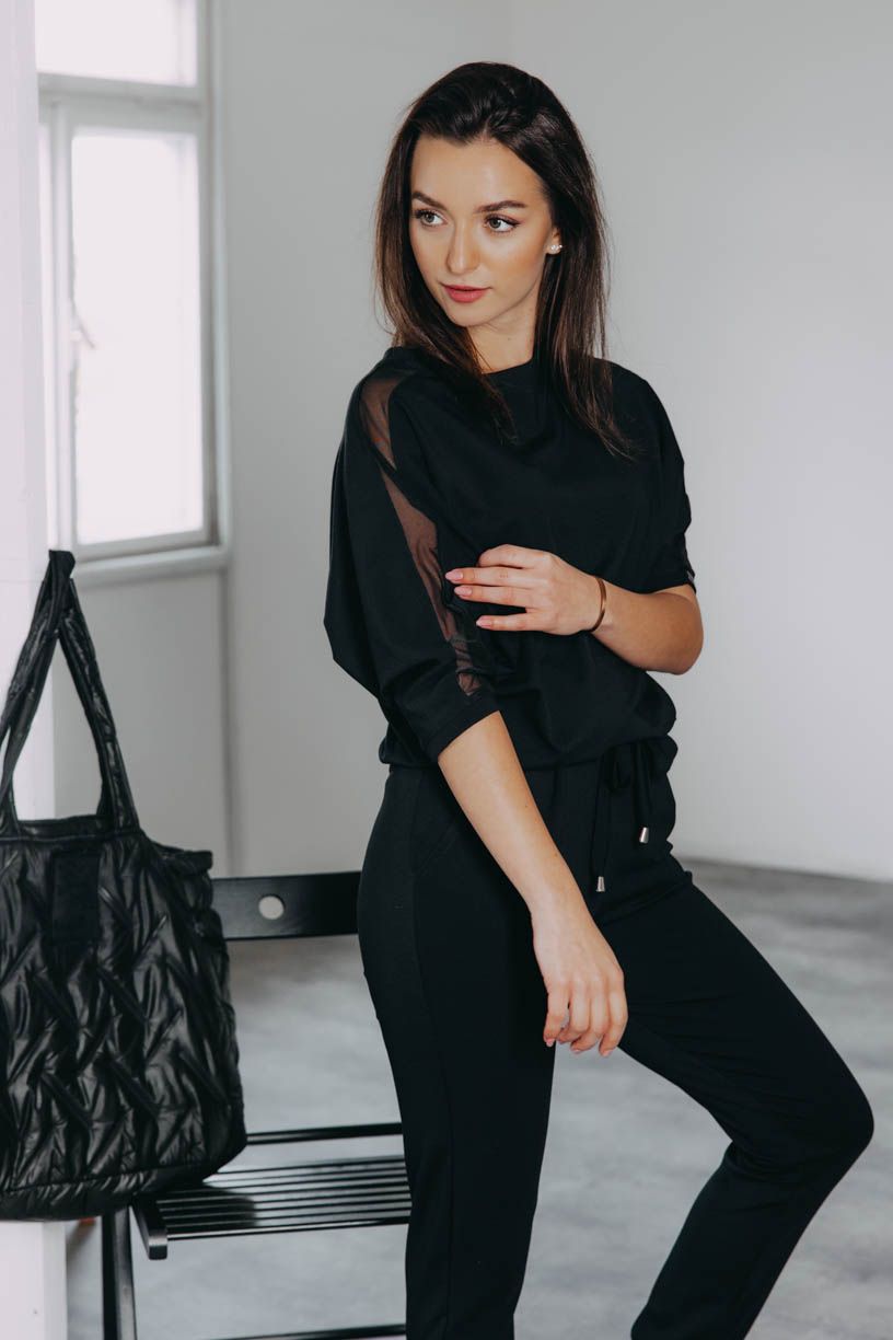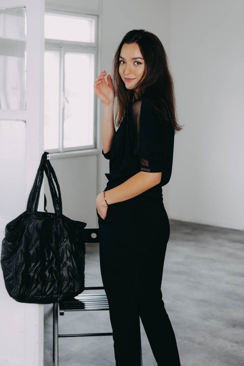 O černé v módě už toho bylo napsáno mnoho. Jisté je, že tahle temná barva je sama o sobě velice elegantní, a tak někdy stačí jen pár detailů, které celkový dojem z vašeho outfitu umocní. Nejmíň na druhou. Tričko Terra se pyšní rafinovaným průsvitným pruhem na rukávech a pohodlným a lichotivým netopýřím střihem. Spodní lem se dá podkasat nebo zastrčit tak, aby vynikl nápaditý pas kalhot Amani – jejich široká guma, šňůrky na zavazování a zadní kapsy bohatě postačí k tomu, abyste se cítila výjimečně, a zároveň pohodlně. (Nezapomeňte, že je máme i v prodloužené verzi.) Svůj smysl pro minimalismus vypíchněte lodičkami na podpatku a lesklou taškou Vatusia pro celodenní nezbytnosti.