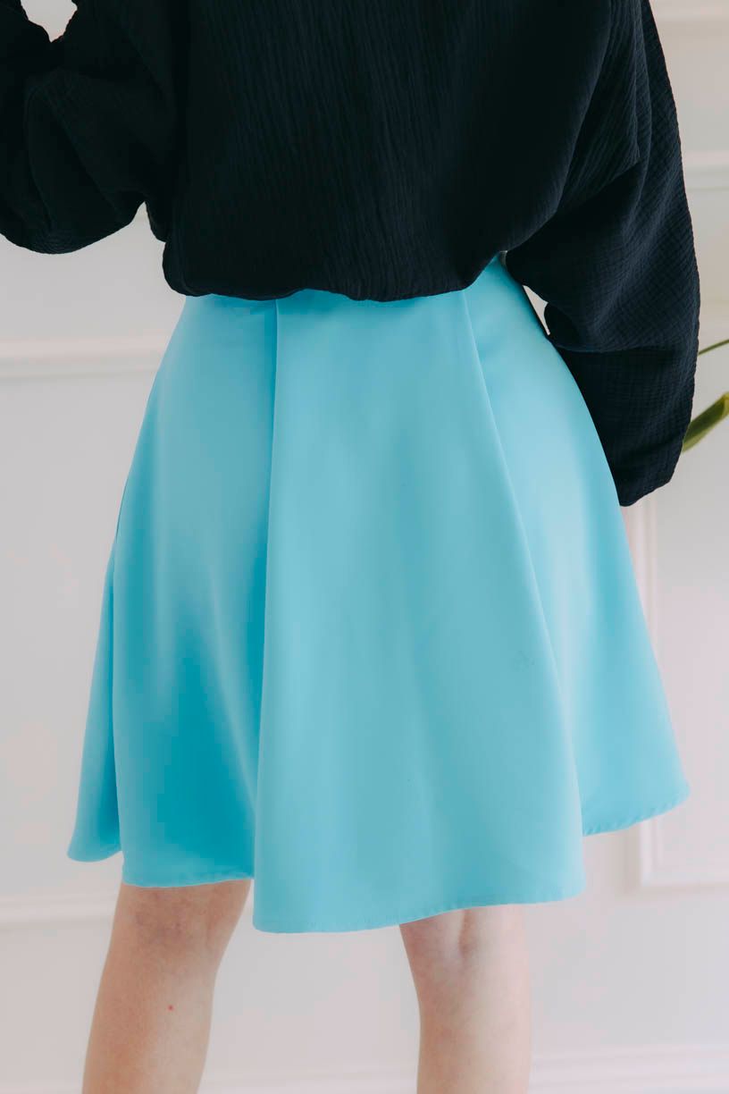 Někdy stačí jen barva a střih, aby outfit navodil tu správnou náladu. A tady máte obojí: nečekanou svěžest nebesky modré a sebevědomý základ v černé. Krátká sukně Mawe v odstínu sky působí lehce jako letní vánek. Zavazování v pase jí dodává ženskost a jakýkoliv pohyb z ní dělá magnet pro oči. Černý přiléhavý crop top Hema s uvolněným Atai tvoří k sukni vyvážený kontrast – hladká linie jednoho a uzel druhého se doplňují v souhře, která není ani strohá, ani přeslazená. Tenhle outfit se nebojí pozornosti. Vezměte ho s sebou večer do města, na setkání s kamarádkou nebo jen tak – když máte chuť cítit se dobře. Není to jen o barvách. Je to o postoji.