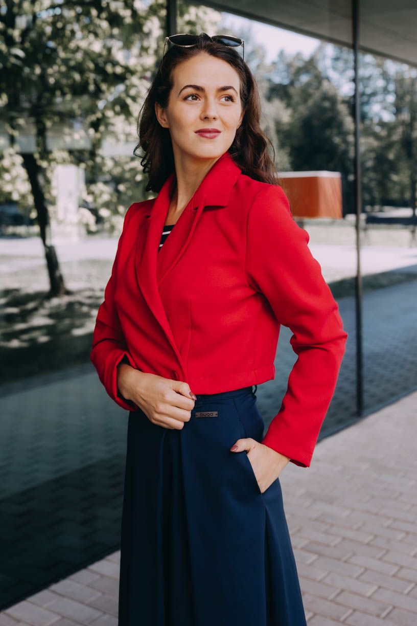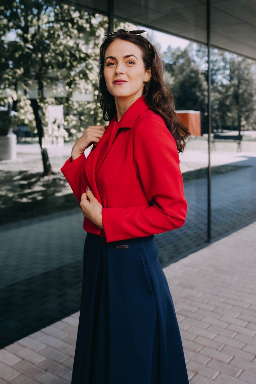 Všimly jste si, jak bezvadně vypadá námořnická modrá v kombinaci s výraznou červenou? Jsme si jistí, že ano – a pokud tomu tak není, tak tady je důkaz (slibovat nic netřeba). Neskonale šik outfit jsme vytvořili z hitů letošního podzimu. Zavinovačka Luo v Navy Blue odstínu a s praktickými a nápaditými knoflíčky se už stihla zabydlet v nejednom dámském šatníku. Bílé proužky na obepnutém navy tričku Gogo s tříčtvrtečními rukávy prolomí zdánlivou jednobarevnost stejně suverénně jako ledoborec arktické vody. Coby koruna celého outfitu pak nesmí chybět prudce šik cropnuté sáčko Aris, které se krom poctivého límce pyšní i netradičním zapínáním. Ulovte si svého námořníka!